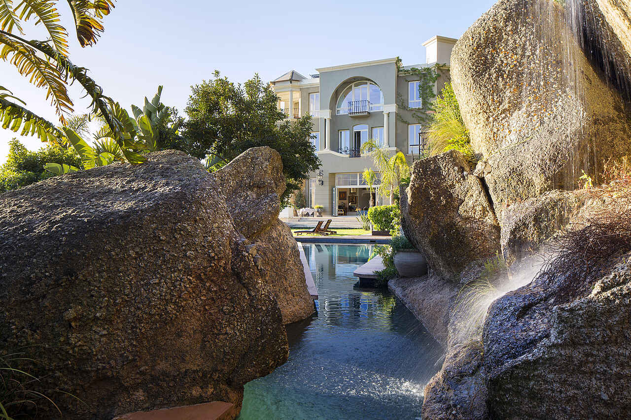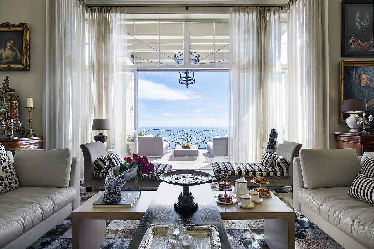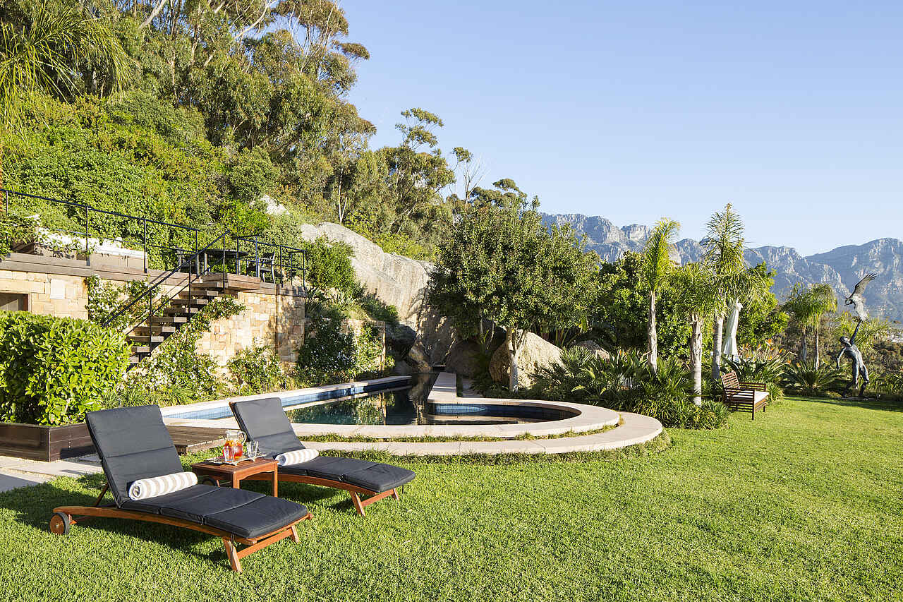 Der offene Wohnbereich der Villa erinnert an ein elegantes Stadthaus, kombiniert mit der Entspanntheit eines Safaricamps am Atlantik. Eine gemütliche Lounge mit Kamin, eine stilvolle Bar und ein gepflegter Garten mit Skulpturen laden zum Verweilen ein. Der Blick schweift über das Meer, während im Infinity-Pool Entspannung angesagt ist. Für Rückzug sorgen lauschige Terrassen und versteckte Sitzecken. Wer den Tag besonders ausklingen lassen möchte, kann auf der Aussichtsterrasse den Sonnenuntergang bei einem Glas Wein erleben. Eine Sauna, ein Dampfbad und Wellnessangebote ergänzen die stilvollen Gemeinschaftsbereiche.
