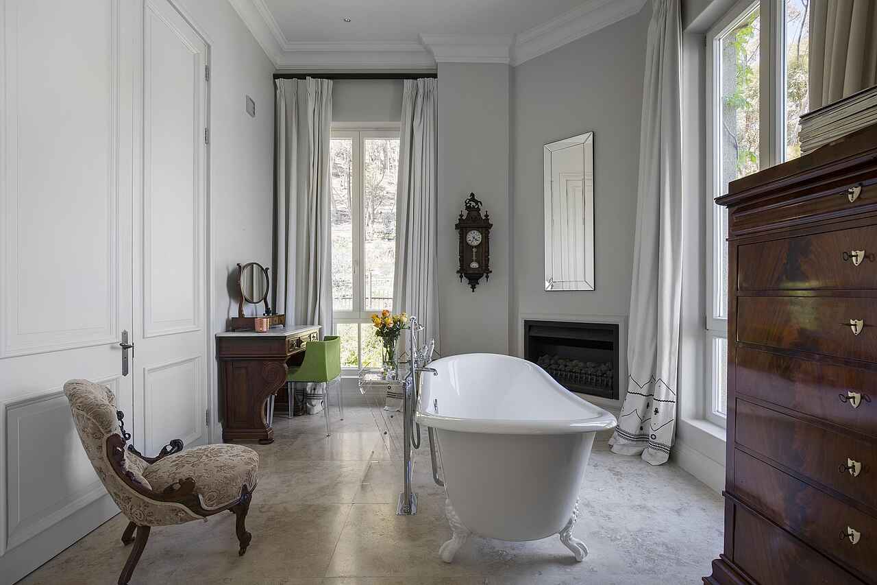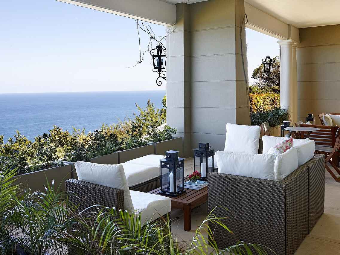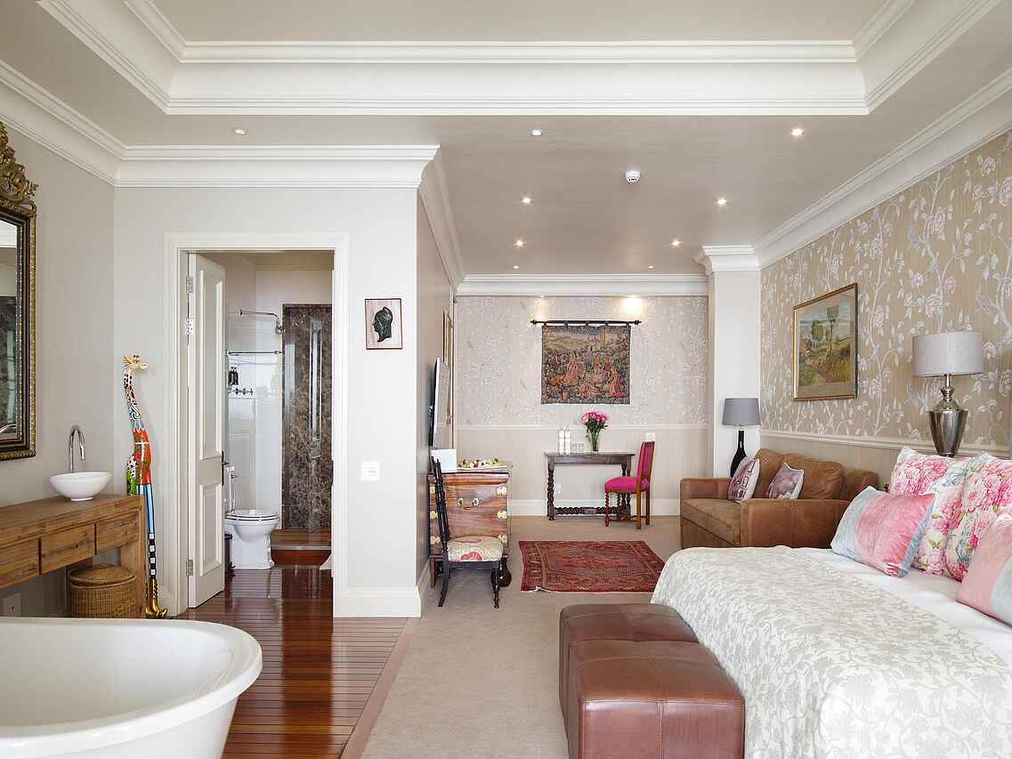 Der offene Wohnbereich der Villa erinnert an ein elegantes Stadthaus, kombiniert mit der Entspanntheit eines Safaricamps am Atlantik. Eine gemütliche Lounge mit Kamin, eine stilvolle Bar und ein gepflegter Garten mit Skulpturen laden zum Verweilen ein. Der Blick schweift über das Meer, während im Infinity-Pool Entspannung angesagt ist. Für Rückzug sorgen lauschige Terrassen und versteckte Sitzecken. Wer den Tag besonders ausklingen lassen möchte, kann auf der Aussichtsterrasse den Sonnenuntergang bei einem Glas Wein erleben. Eine Sauna, ein Dampfbad und Wellnessangebote ergänzen die stilvollen Gemeinschaftsbereiche.