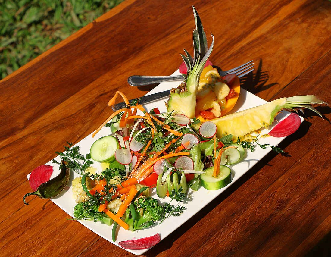 Die Lodge produziert fast alle Lebensmittel nachhaltig. Die Hühner sind Freilandhühner. Es gibt ein Projekt, im Nyankombe River Forellen zu züchten. Gemüse und Obst stammen aus den eigenen, organischen Gärten. Selbst Pfeffer wird vor Ort produziert. Honig aus eigener Imkerei. Alle Mahlzeiten sind in der Regel inbegriffen. Sie werden vom Chefkoch jeden Tag frisch zubereitet. Getränke werden individuell abgerechnet. Auf besondere Wünsche wird gerne Rücksicht genommen, sofern sie rechtzeitig angemeldet werden.