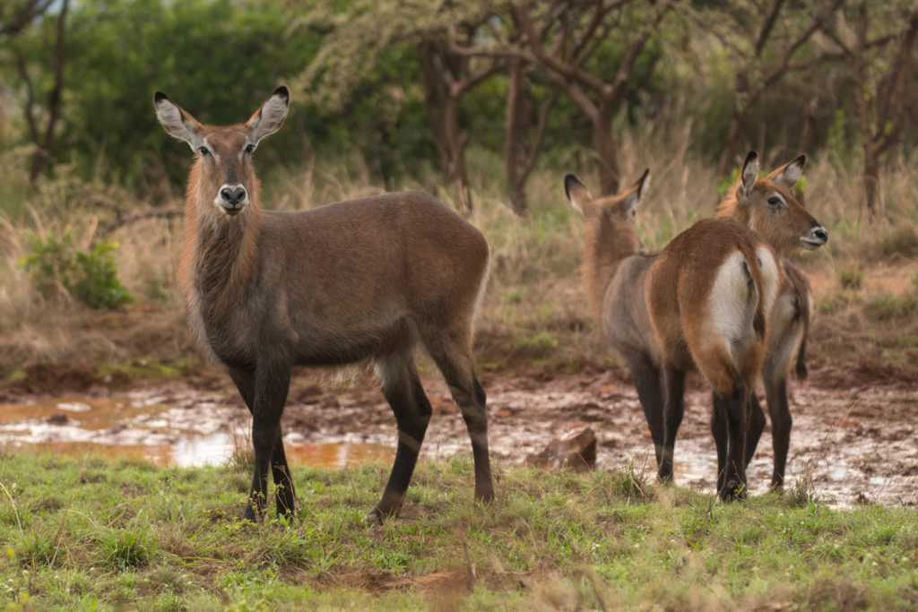 Löwen, Leoparden, Elefanten, Spitzmaulnashörner, Büffel, Giraffen, Impalas, Zebras, Hyänen, Schakale, Kudus, Gnus, Nilpferde, Sitatungas, Wasserböcke, Warzenschweine, Topis, ; ca 500 Vogelarten, darunter Schuhschnabel, Papyruswürger, Fischadler, Sunbirds, Kronenkraniche, Eisvögel, Goliathreiher, Dommeln, Webervögel, Nilgänse