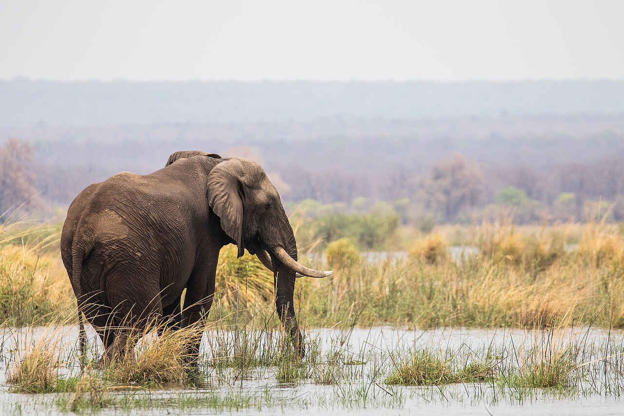 Auf den kleinen Inseln vor dem Amanzi Camp lebt eine Gruppe von Elefantenbullen, und auch sonst handelt es sich um eine sehr tierreiche Region des Lower Zambezi National Park mit Löwen, Leoparden, Geparden, Krokodilen, Nilpferden, Büffeln, Antilopen (Gnu, Wasserbock u. a.), Zebras, u. v. m.; außerdem leben etwa 500 Vogelarten im Park, darunter Rotbauchwürger, Buschwürger, verschiedene Geier- und Greifvogelarten, u. v. m.
