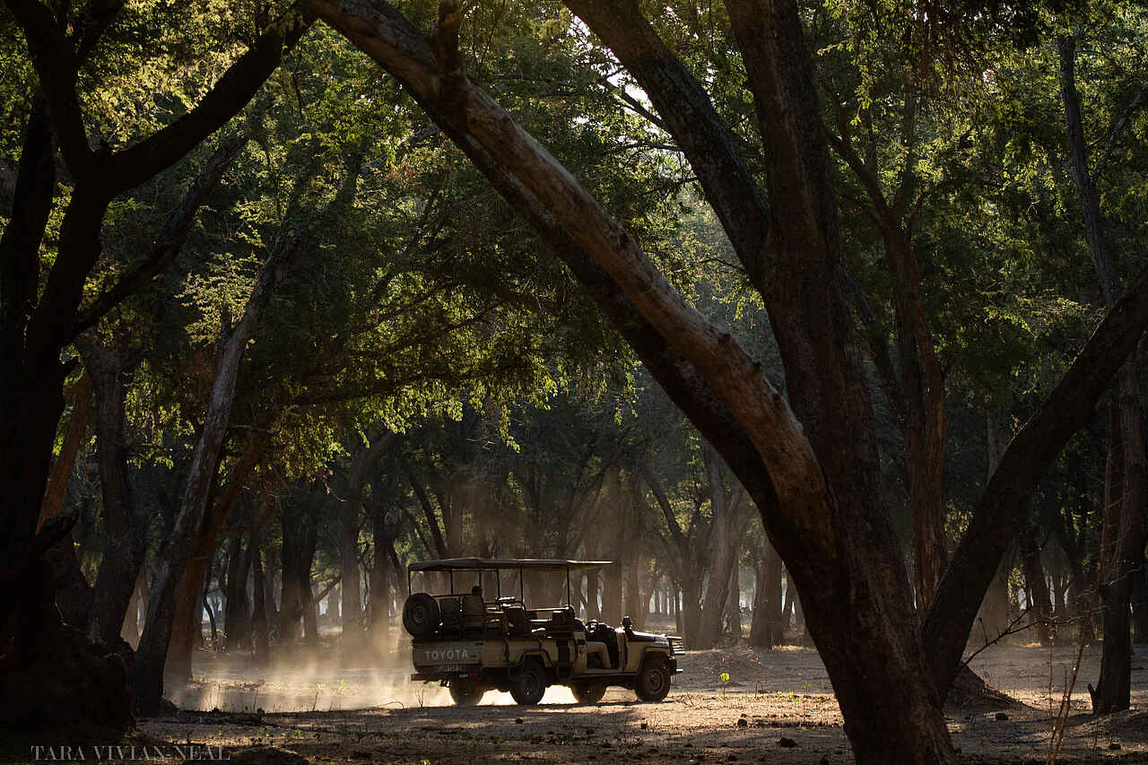 Pirschfahrten im Lower Zambezi National Park mit max. 4 Gästen pro Fahrzeug, Nachtpirschfahrten, Bootstouren, Fischen, Kanusafari, Birding, geführte Buschwanderungen, Kulefu Woodlands, Mapata-Schlucht.