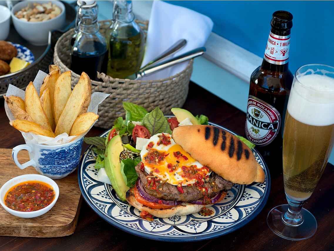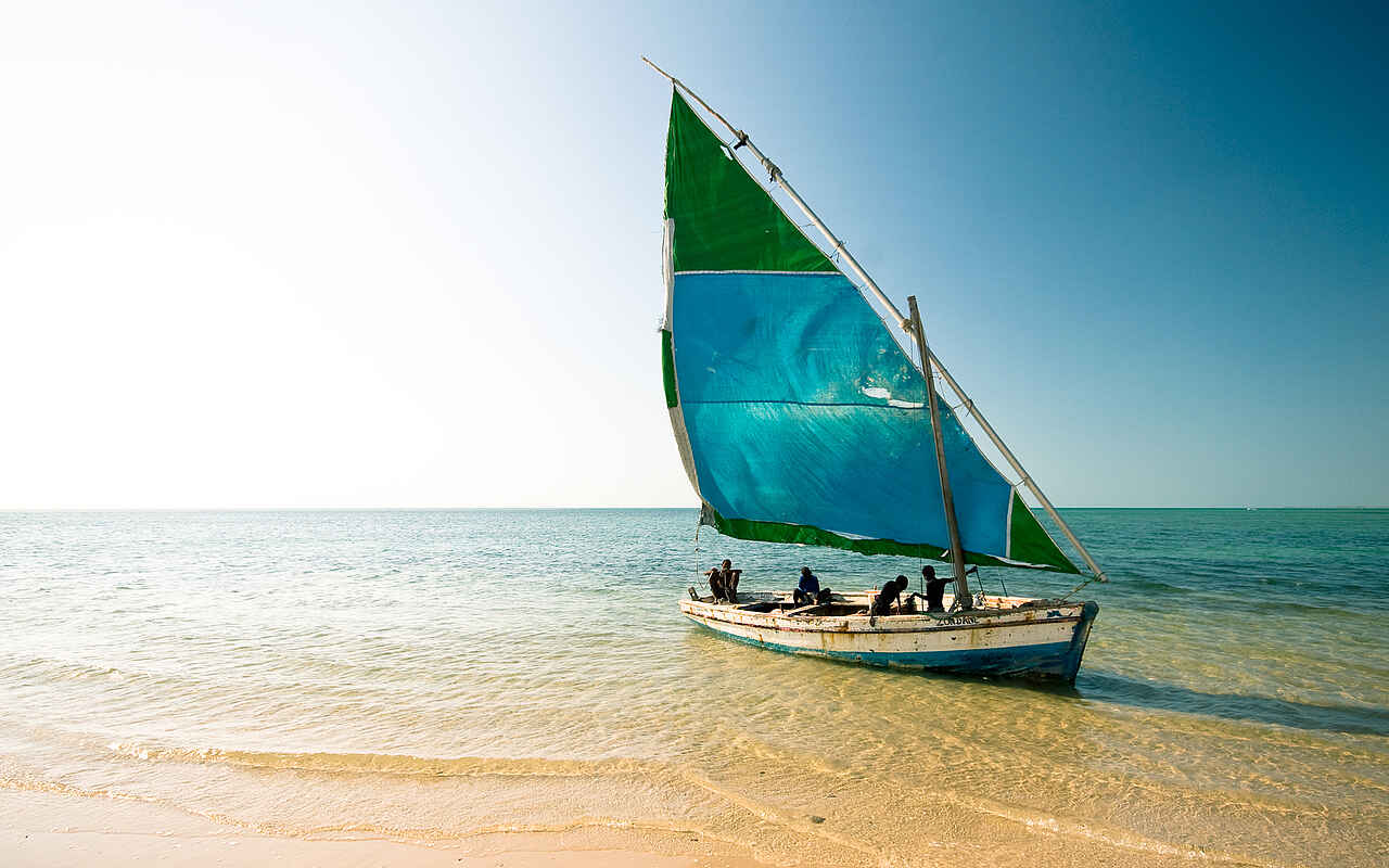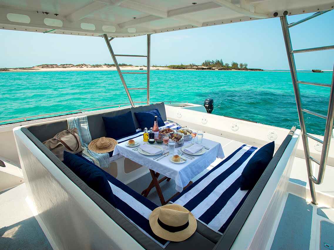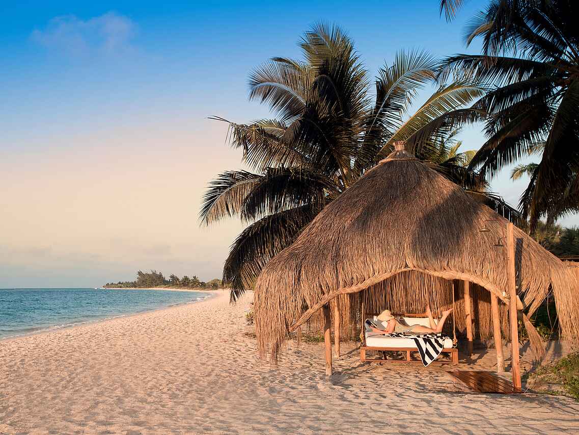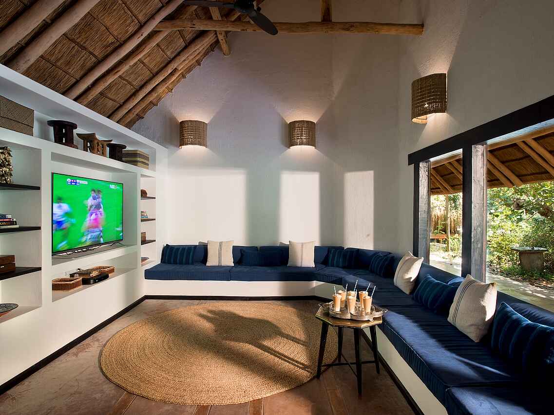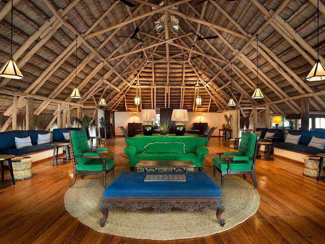 &Beyond Benguerra Island liegt auf der Ostseite der gleichnamigen, als Nationalpark geschützten Insel an einm privaten Strand. Unmittelbar vor der Lodge, die unter Palmen und Bäumen errichtet ist, gibt es einen Tiefwasserkanal, der es ermöglicht, unabhängig von Ebbe und Flut beliebige Wasseraktivitäten zu starten.