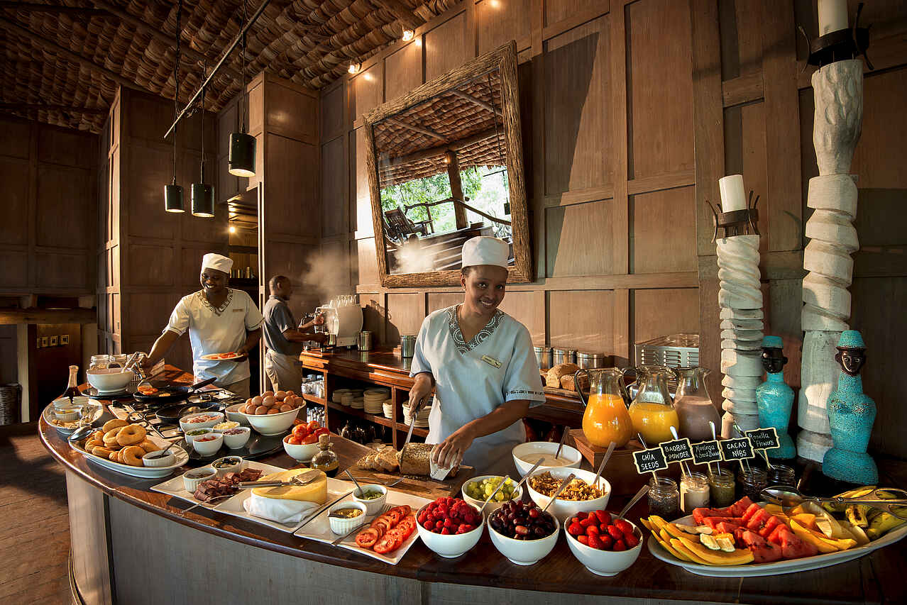 Vollpension, alle Getränke inkl., außer Spitzenweine, Champagner und importierte Spirituosen. Es gibt ein englisches/kontinentales Frühstück, 3-Gänge-Lunch, Tea Time und 3-Gänge-Dinner. Die Gäste speisen in der Boma oder im Speisesaal an individuellen Tischen. Picknicks während der Safari-Aktivitäten werden gerne zusammengestellt.