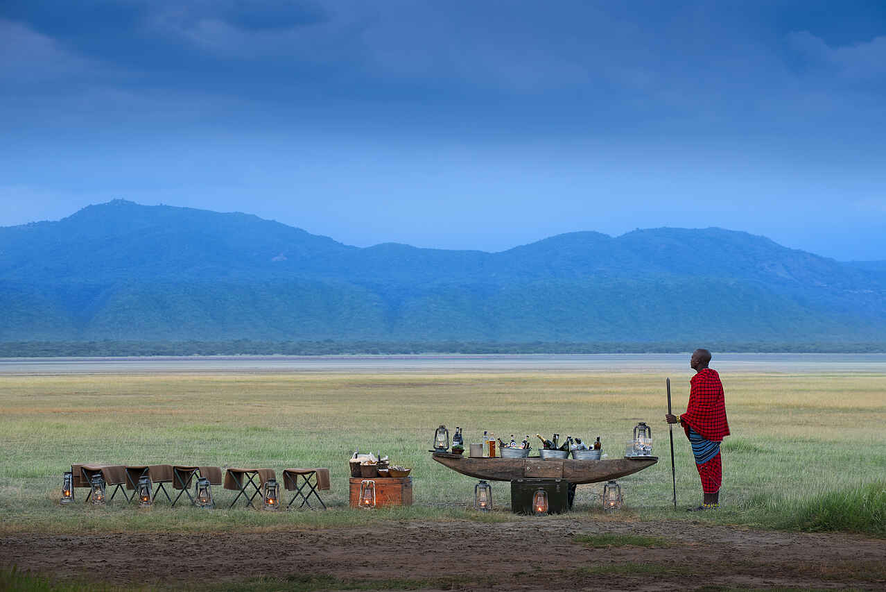 Morgenpirschfahrt mit Snacks und heißen Getränken, Nachmittagspirschfahrten mit Sundowner, immer mit den ausgezeichneten Guides von &Beyond. Fahrzeuge können gegen Zusatzkosten auch privat gebucht werden. Gegen Zuzahlung: Nachtpirschfahrten, Fahrradtouren oder Wanderungen am und um den Lake Manyara, Maji Moto Hot Springs, Massai-Dorf-Besichtigung, Birding, Swimmingpool, Spa, Massagen, Sport.
