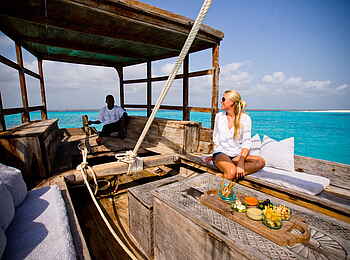 Das vielleicht schönste Strand-Ziel Afrikas, Luxus-Resort auf einem Inselparadies, schneeweiße Strände, das weltberühmte Mnemba-Atoll mit seinen Korallenriffen, Service auf internationalem Top-Level.