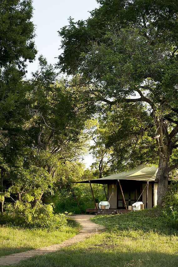 Das &Beyond Ngala Tented Camp ist auch auf Grund seiner geringen Größe ein sehr exklusives Camp mit bestem Service. Aussichtsplattformen bieten uneingeschränkte Sicht auf den Timbavati River und die dort umherstreifenden Tiere.