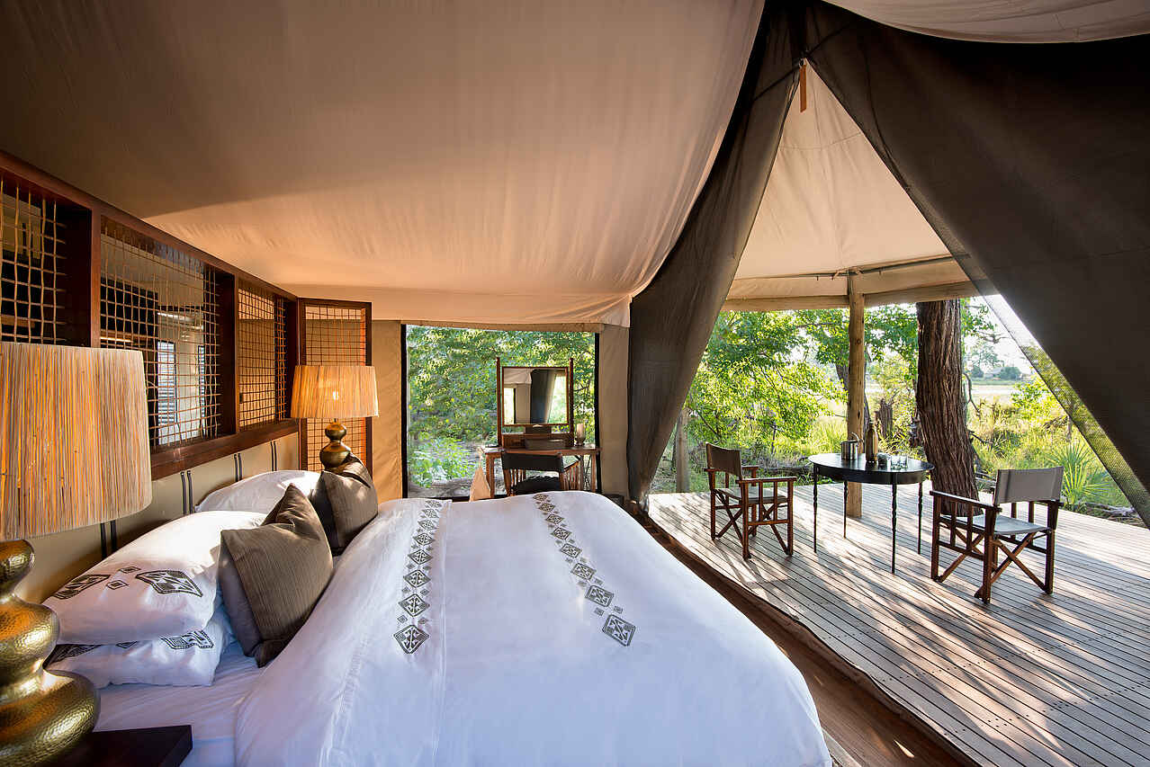 Das Nxabega Okavango Tented Camp vermischt Eleganz und Einfachheit zu einem perfekten Okavango-Erlebnis mit Wasser- und Landaktivitäten.