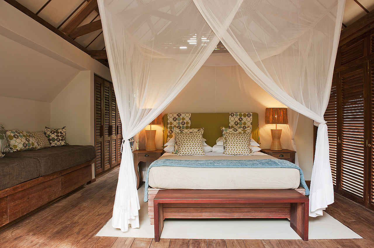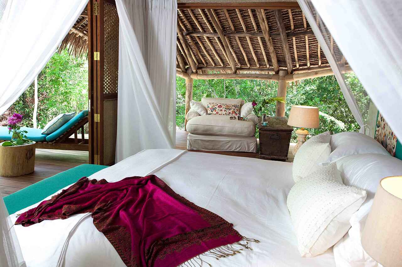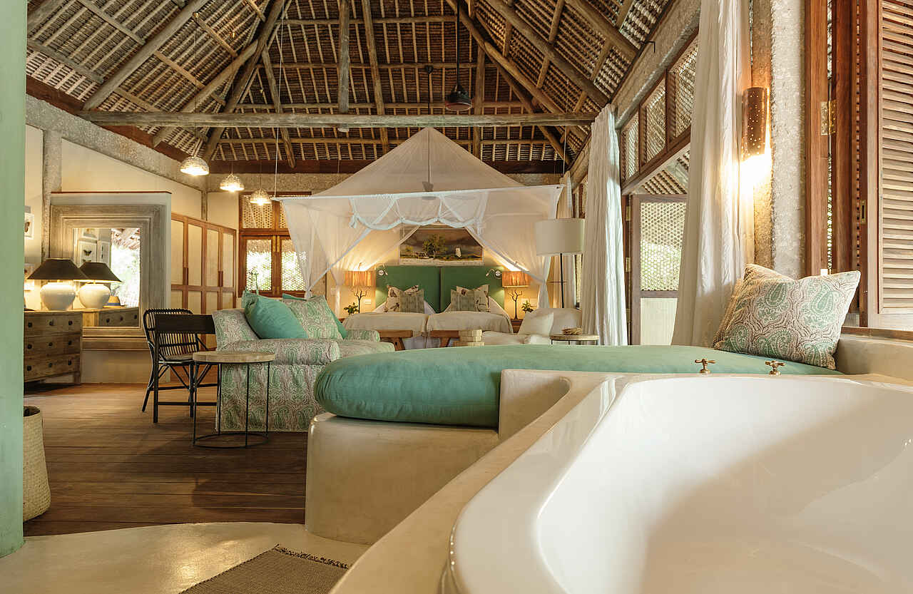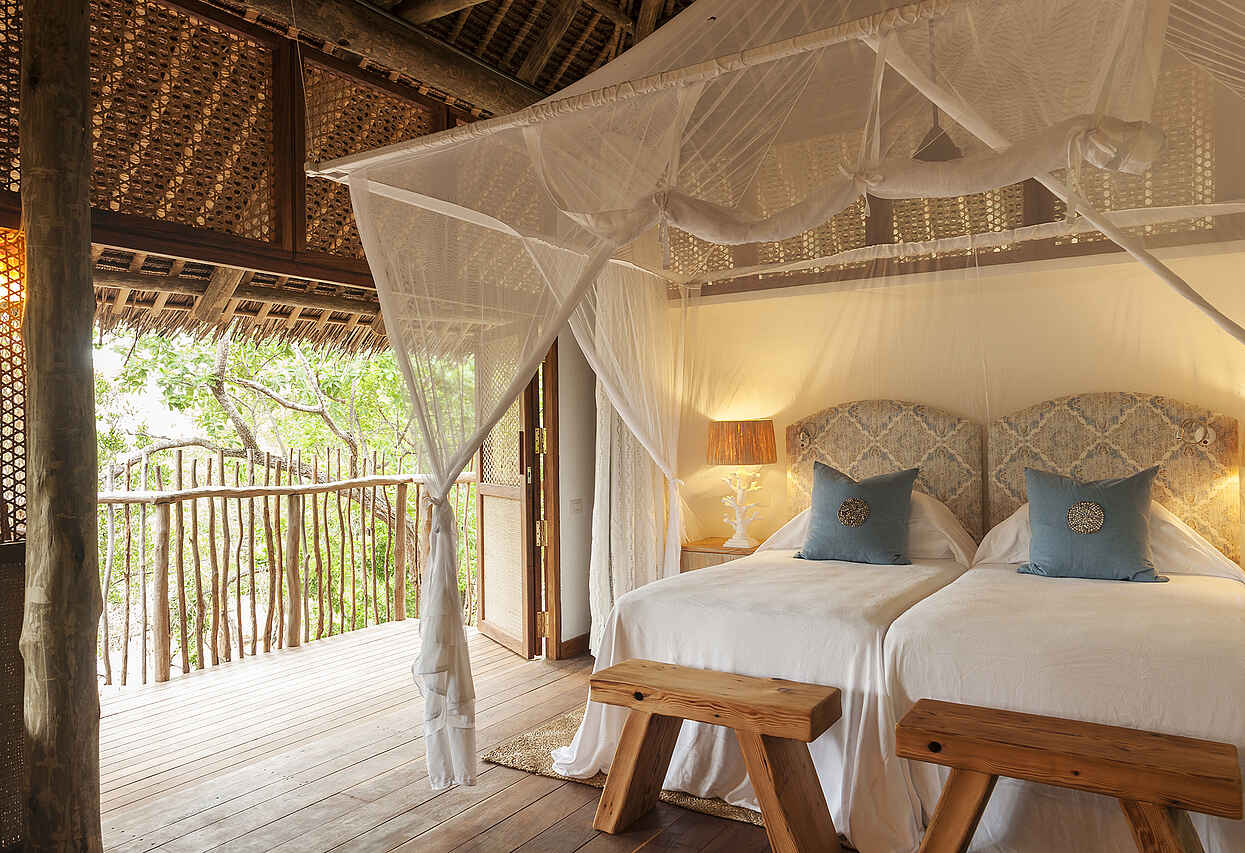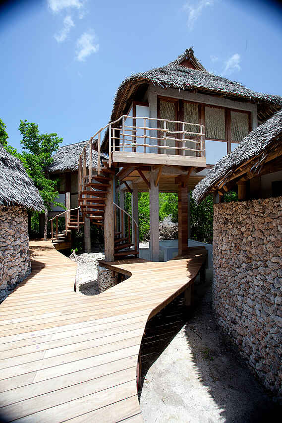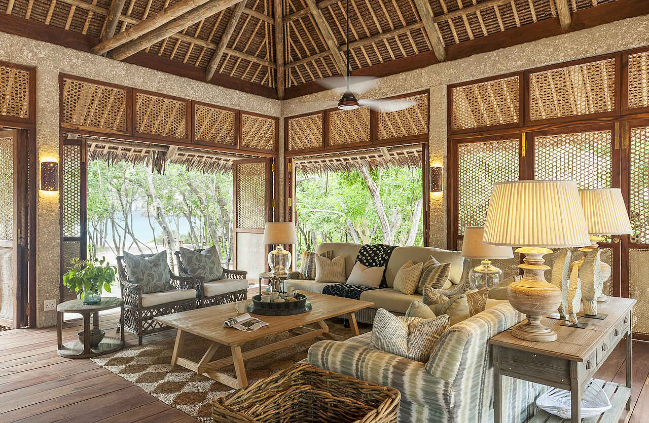 &Beyond Vamizi Island bietet 6 individuell gestaltete Villen, die alle über einen privaten Strandabschnitt verfügen und sich entweder unmittelbar an der Küste oder etwas mehr im dichten Grün des Waldes befinden. Die Größenordnung liegt bei 165 qm in der kleinsten und 250 qm in der größten Villa. Jede hat 5 bis 6 Schlafräume in unterschiedlicher Gestaltung und Belegungsmöglichkeit, z.B. als Baumhaus, mit privater Sonnenterrasse und/oder mit direkt angrenzendem Zimmer für eine Tagesmutter. Die Ausstattung variiert stets, beinhaltet jedoch meist großzügige Wohn-Ess-Außen-und Entertainmentbereiche sowie einen Swimmingpool. Kurze Beschreibung, weitere Informationen in den Details: Kipila: Max. 12 Gäste in 4 Suiten und einem Kinderzimmer mit Pool, Aussichtsturm, Satelliten-TV und großen Wohn-Entertainment-Außen-und Essbereichen. Suluwilo: Max. 12 Gäste in 4 Suiten, davon eine Mastersuite mit Außen-Badewanne. Kinderzimmer, Pool, Aussichtsturm, Satelliten-TV, Wohn-Entertainment-und Essbereichen und abgesenkter Innenhof. Papilio: Max. 16 Gäste in 4 Suiten mit privatem Sonnendeck und Lounge. 2 Baumhäuser, Pool, Aussichtsturm, Bar-und Essbereich, Wohnbereiche am Strand und mit offener Feuerstelle. Tartaruga: Max. 14 Gäste in 4 Suiten mit eigenem Sonnendeck und Lounge und 2 Baumhäusern. Pool, große Wohnbereiche und Essbereich direkt am Strand. Casa Marjani: Max. 12 Gäste in 5 Suiten davon eine Mastersuite mit eigenem Strandabschnitt und eine mit privater Veranda. Kinderzimmer, begehbare Duschen in den Privatbädern, Bibliothek, Ess-und Wohnbereich, Aussichtsturm und Innenhof. Casamina: Max. 16 Gäste in 6 Suiten. Kinderzimmer, Pool, Aussichtsturm, Satelliten-TV, Essbereich, Spielzimmer und Wohnbereich auf zwei Ebenen.