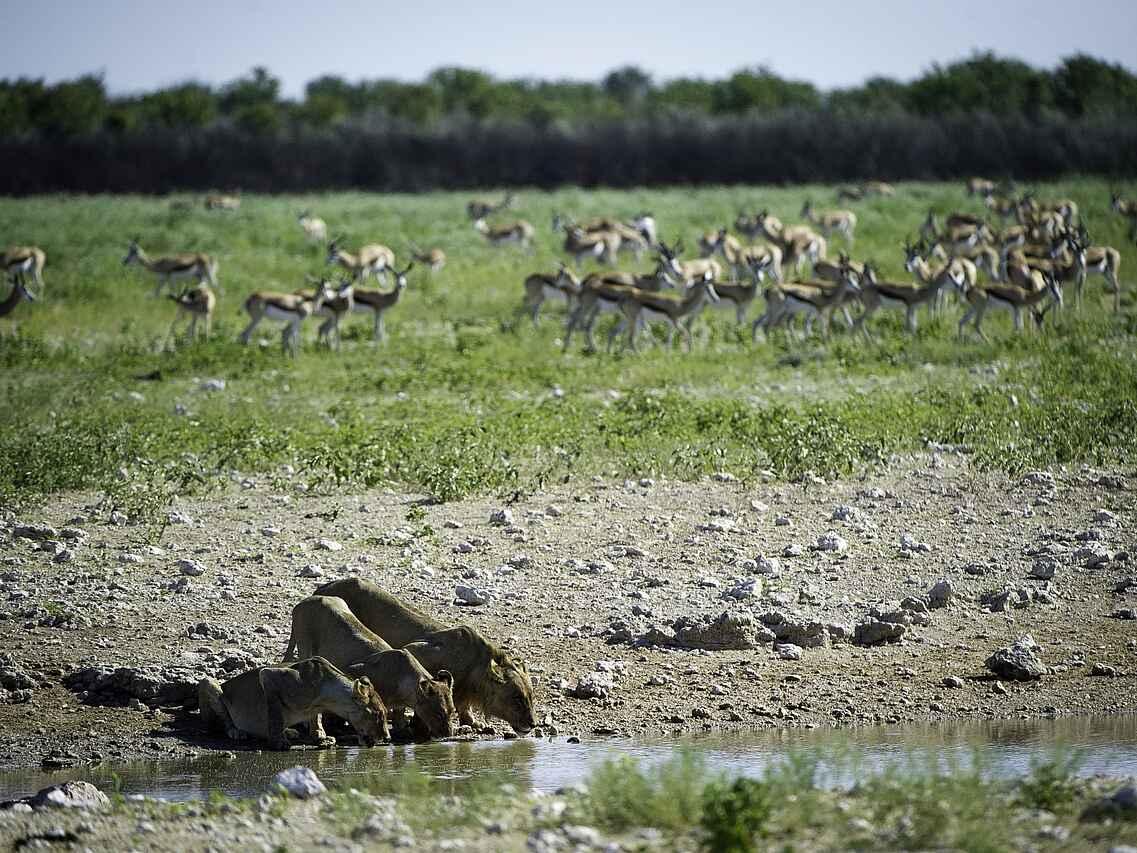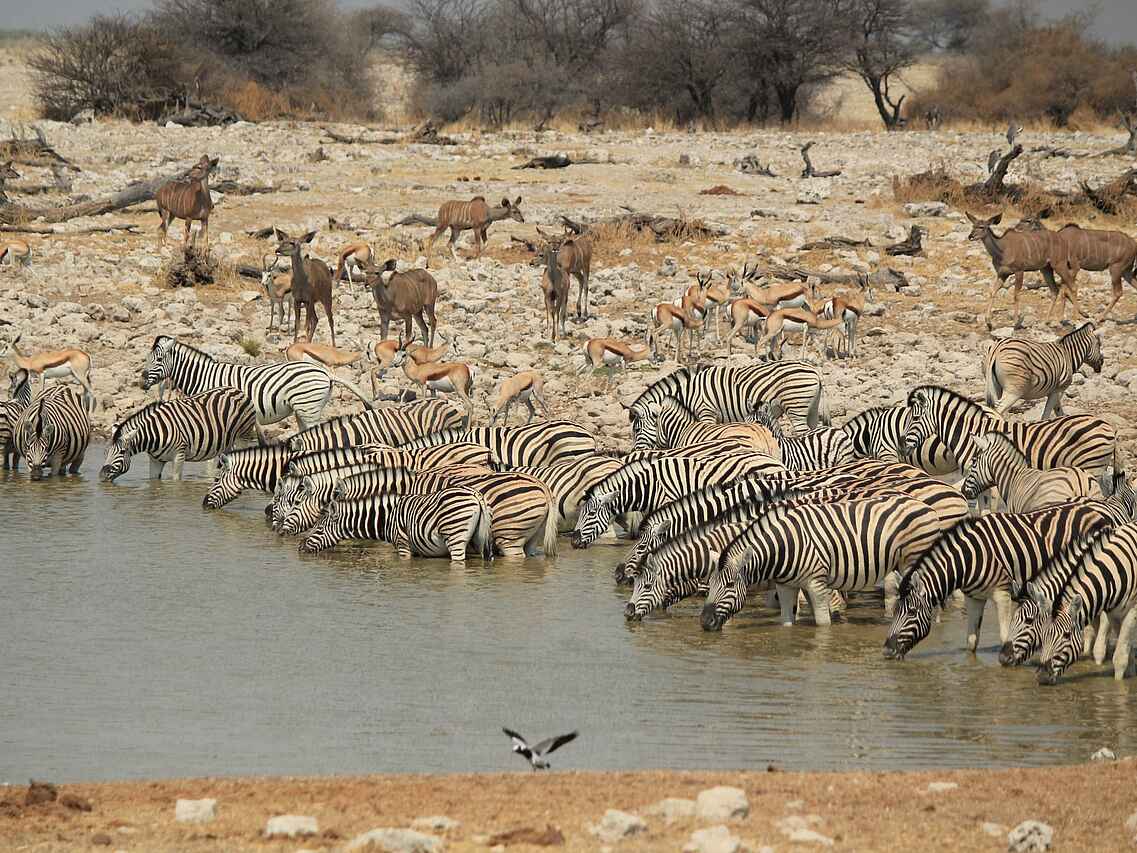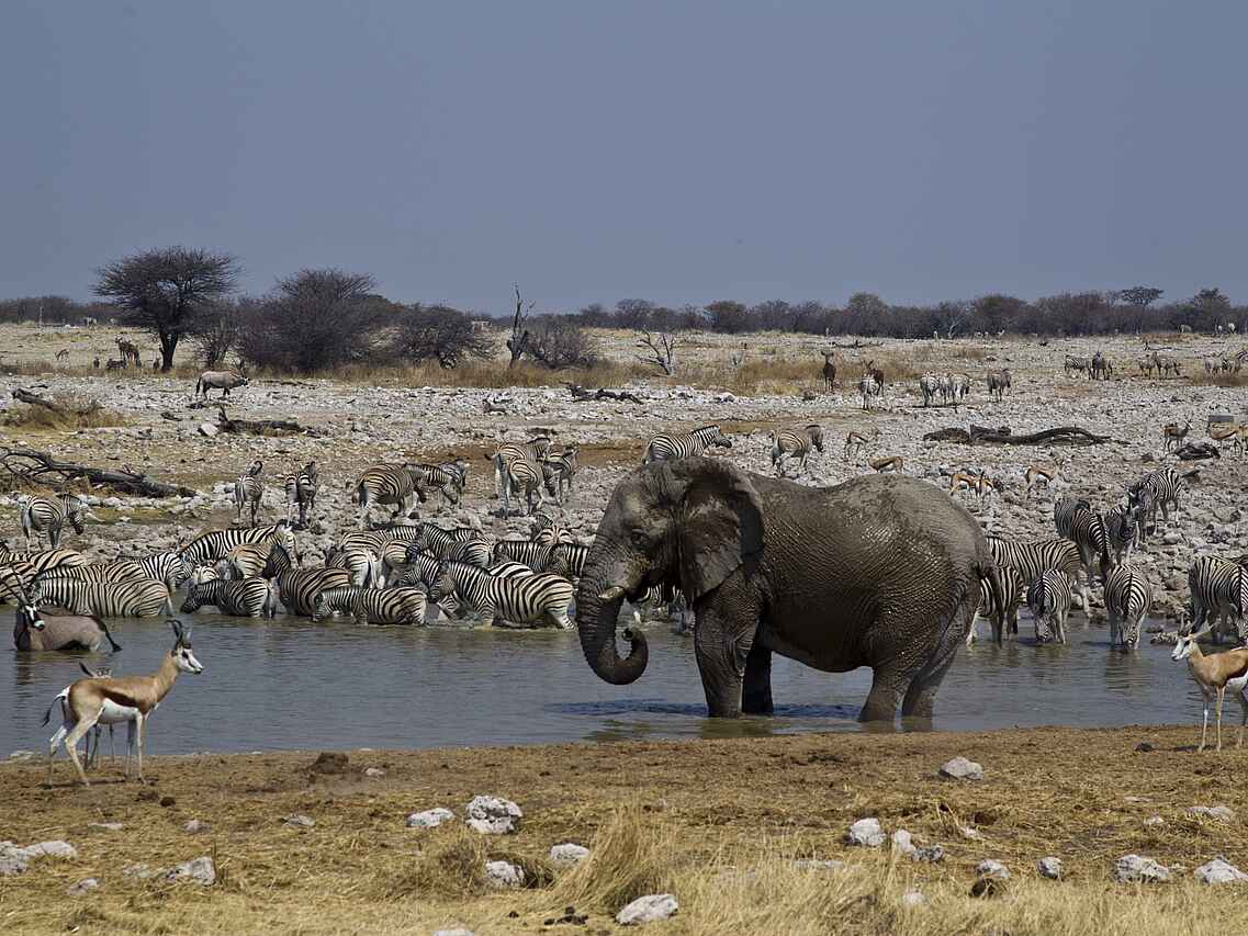 Der wenige Regen fällt zwischen Mitte November und Mitte April. Danach wird es Monat für Monat heißer, bis die nächste Regenzeit Kühlung bringt. Tier kann man am besten ab August bis Ende November beobachten, wenn sie sich in großen Zahlen an den Wasserlöchern versammeln.