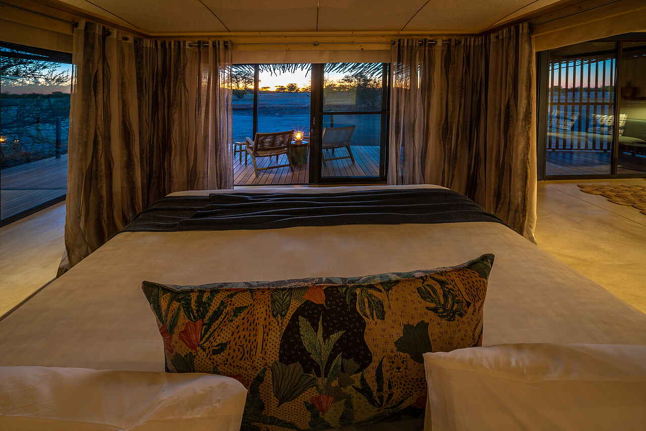 Anderssons at Ongava liegt inmitten des Ongava Wildschutzgebiets an der südlichen Grenze des berühmten Etosha Nationalparks. Charakteristisch für die Region sind die silbrig-weiß glänzenden Salzpfannen sowie die Wasserstellen, die vor allem in der Trockenzeit eine große Anzahl an Wildtieren anlocken. Im privaten Ongava Reserve gibt es Hügelketten mit schönem Baumbestand.