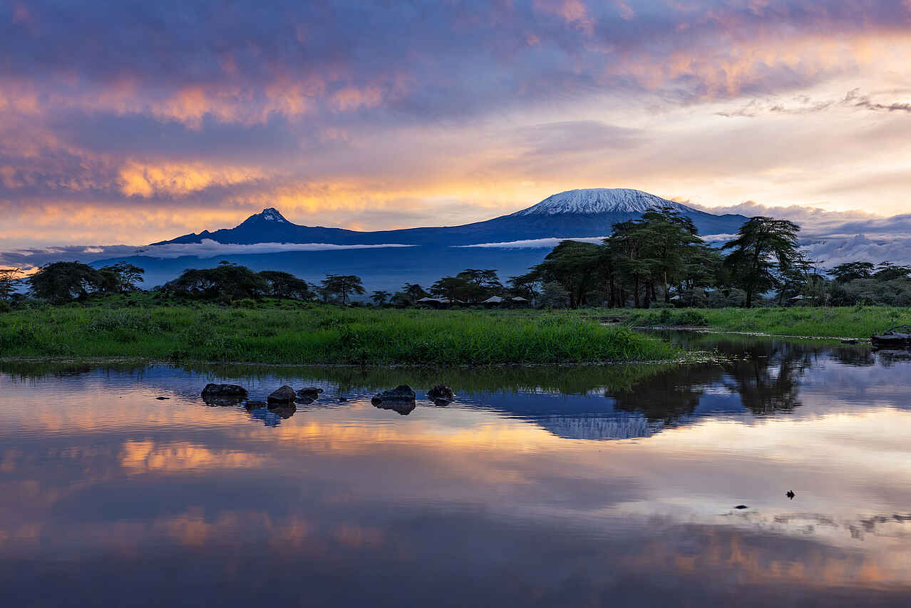 Angama Amboseli liegt in Kenia, in der privaten Kimana Sanctuary, am Fuße des beeindruckenden Kilimandscharo. Die luxuriösen Suiten, ein Infinity-Pool mit Blick auf ein Wasserloch für Elefanten und ein 360-Grad-Aussichtsturm schaffen unvergessliche Erlebnisse. Das Camp vereint modernen Komfort mit authentischen kenianischen Einflüssen und bietet maßgeschneiderte Safaris, kulturelle Einblicke in die Massai-Traditionen und eine erstklassige Küche. Die private, intime Atmosphäre und die faszinierende Tierwelt machen Angama Amboseli zu einem unvergleichlichen Safari-Erlebnis.