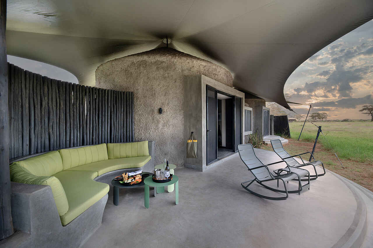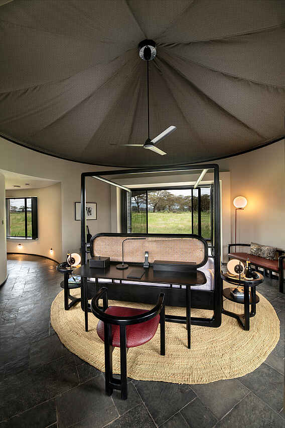 Um die spektakuläre Aussicht auf den Kilimandscharo optimal zu genießen, sind die Suiten mit bodentiefen, verglasten Schiebetüren ausgestattet, die auf eine private Veranda führen. Dort erwartet die Gäste ein schattiger Loungebereich und die charakteristischen Schaukelstühle von Angama - perfekt, um die Landschaft in Ruhe zu bewundern. Für Familien stehen zwei spezielle Familiensuiten zur Verfügung. Diese bestehen aus jeweils zwei Standard-Suiten, die durch einen sicheren, innenliegenden Durchgang verbunden sind.