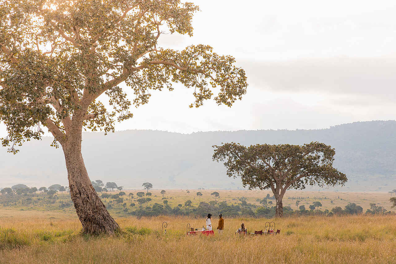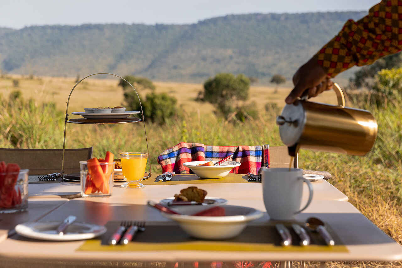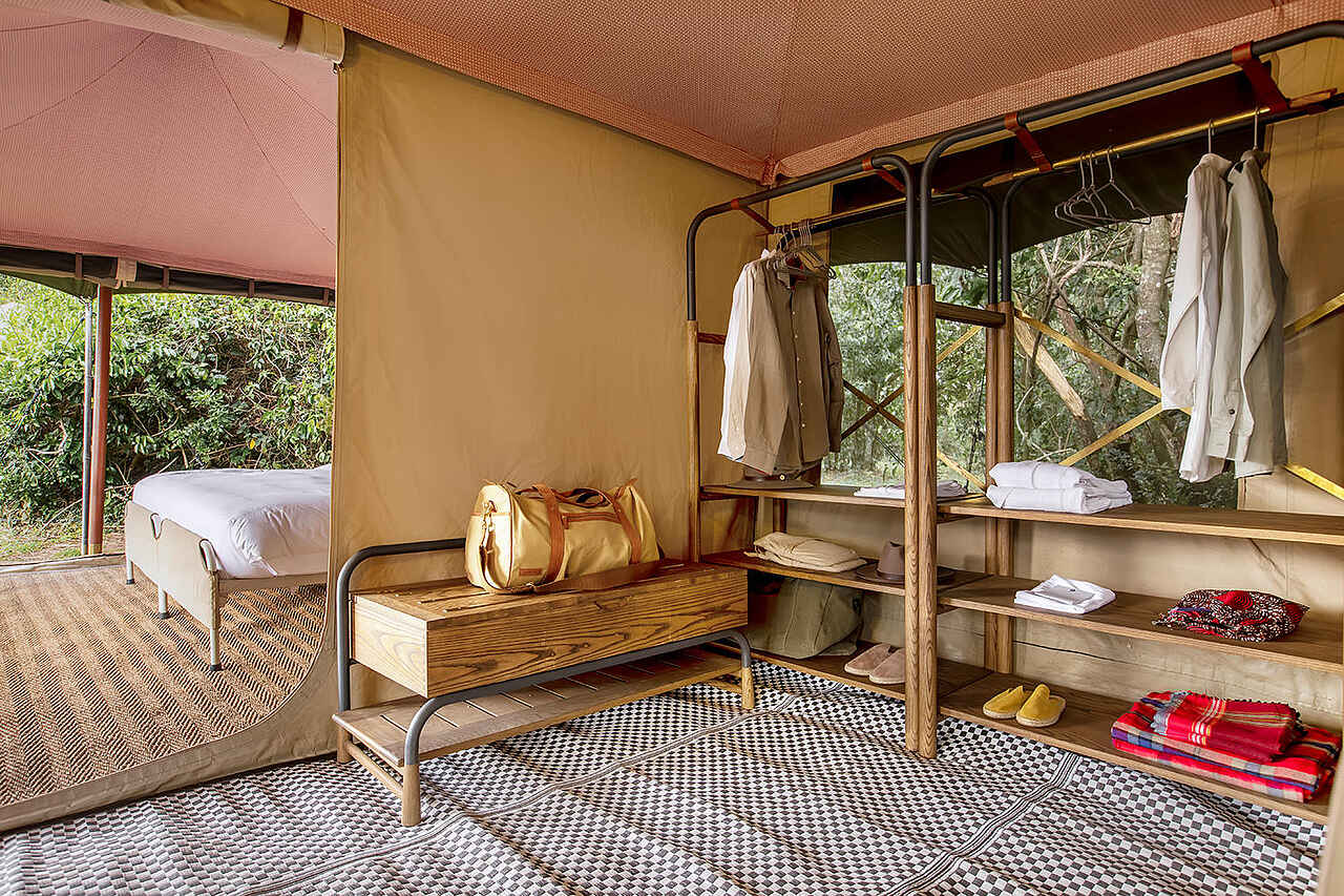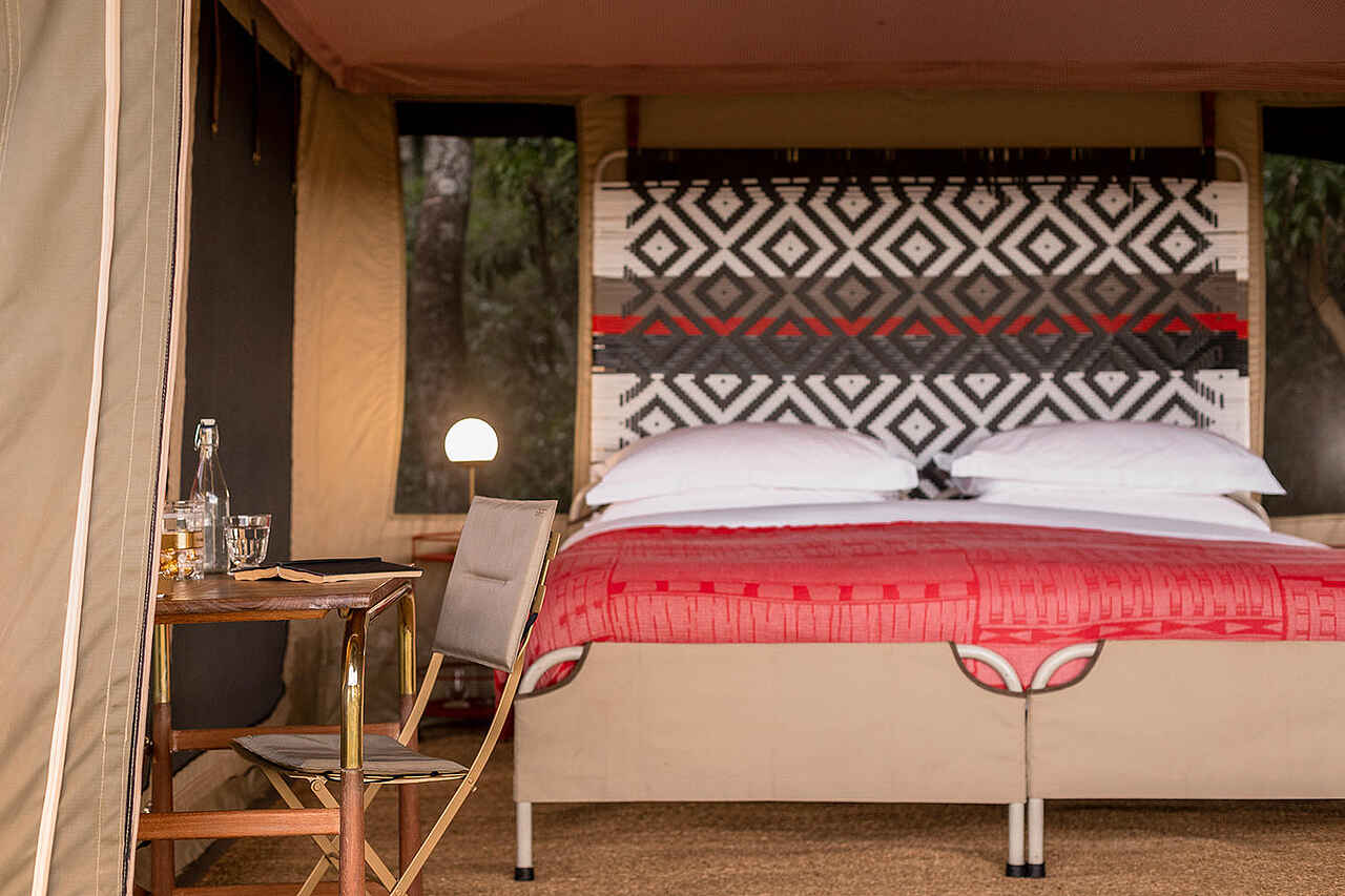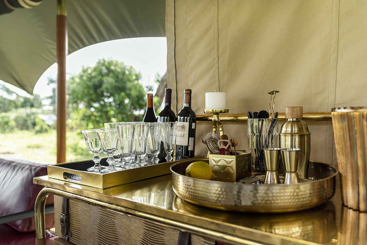Jedes der vier Zelte verfügt über ein großes Doppelbett mit Moskitonetz, Sitzmöbel und ausreichend Ablageflächen. Die Farbgebung ist hell und erdverbunden. Die Zelte besitzen eine private Veranda mit Ausrichtung auf die Ebenen des Mara Dreiecks. Im En-suite-Badezimmer stehen eine Dusche, Waschbecken und WC zur Verfügung, ergänzt durch hochwertige Pflegeprodukte, weiche Handtücher und warmes Wasser. Kaffee und Tee werden morgens im Zelt serviert, auf Wunsch auch als Weckdienst. Die Unterkünfte sind so positioniert, dass sie deutlichen Abstand zueinander wahren und ein hohes Maß an Privatsphäre bieten. Familienzelte werden nicht angeboten, Gruppen können jedoch das gesamte Camp exklusiv buchen.