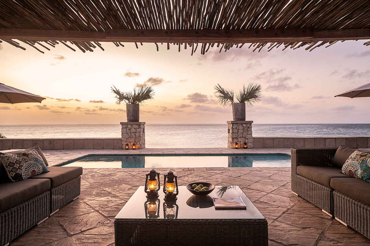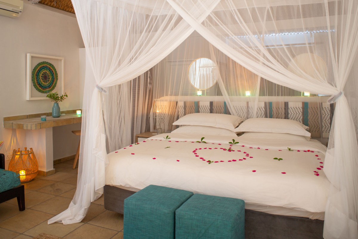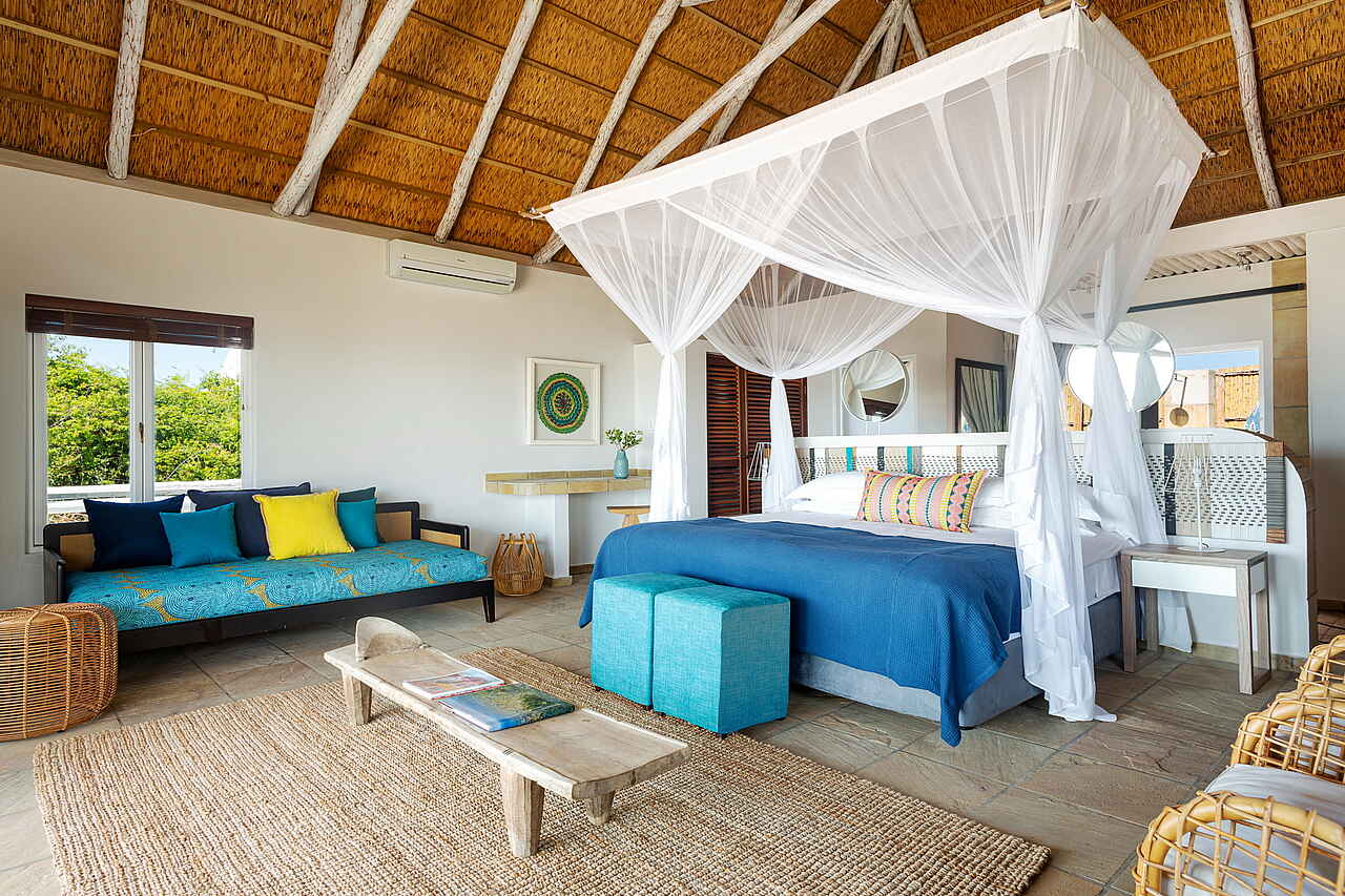 Die Schlafzimmer sind mit bequemen Betten unter Moskitonetzen, Deckenventilatoren und stilvollen Sitzgelegenheiten ausgestattet. Zur weiteren Ausstattung zählen eine Minibar, Kaffee- und Teezubereitungsmöglichkeiten sowie ein Safe. Die offenen En-suite-Badezimmer verfügen über Doppelwaschbecken, großzügige Duschen, Pflegeprodukte und frische Handtücher. Während des Aufenthalts kümmert sich ein persönlicher Butler um alle Wünsche der Gäste.