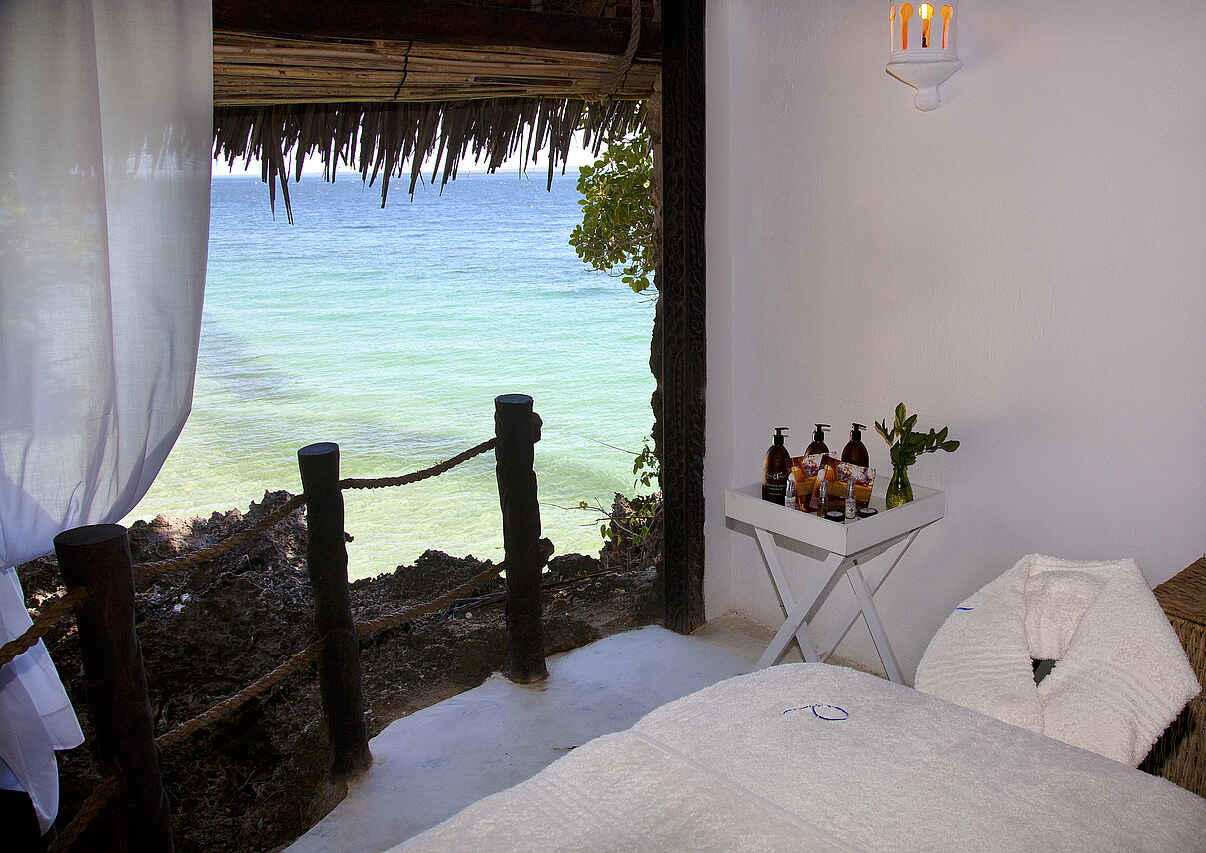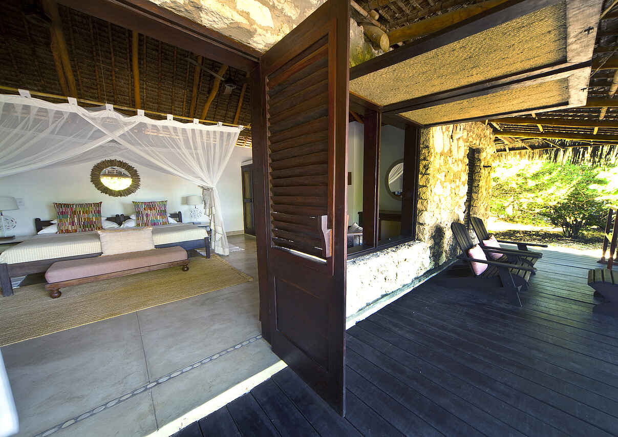 Die Azura Quilalea Lodge 9 Villen mit Blick auf den Ozean, davon 4 Kaskazi Villas, 4 Kusi Villas und die luxuriöse Villa Quilalea. Alle Gebäude aus Stein mit traditionellem Reetdach. Jede Villa mit privatem Host, der sich um das Wohl seiner Gäste kümmert. Die gesamt Anlage kann exklusiv gebucht werden, die Gäste können ihren Energieverbrauch in der Villa selbst steuern. Alle Villen mit Kingsize-Betten (double oder Twin), Bad en suite (Innen- und Außendusche, Fön, Doppelwaschbecken, separate Toilette, Bidet), Deckenventilatoren, Aircondition, Moskitonetzen, Minibar, Safe, Kaffee-/Teestation und ein Veranda mit Liegestühlen und Tagesbett. Die Kusi Villen haben eine bessere Lage als die Kaskazi Villen und zusätzlich eine Hängematte und eine private Beach Sala. Die größere Villa Quilalea liegt auf einem privaten Teil der Insel und hat eine große Außenveranda, Dining Area, Lounge, Ankleide, Infinity Plunge Pool, Hängematte und einen privaten Meereszugang. Das Bad hat zusätzlich eine große Badewanne, zur Ausstattung gehören weiterhin eine Lounge Area, eine Ankleide und eine bequeme Hängematte. Alle Villen haben Platz für ein Extrabett für ein Kind bis 12.