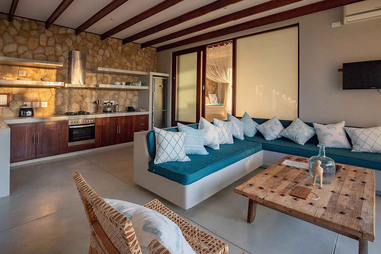 Etwa 5km südlich von Bahia Mar Boutique Hotel liegt ebenfalls am Strand das exklusive Bahia Mar Beach House mit Platz für maximal 4 Gäste. Obwohl das Beach House offiziell als Self Catering Unit ausgewiesen ist, wird es effektiv immer mit privatem Koch gebucht, so dass Einkäufe und Zubereitung der Mahlzeiten geregelt und individuell auf die Gäste abgestimmt sind. Im Übrigen kann man auch jederzeit das Restaurant im Boutique Hotel besuchen. Das Beach House hat also eine eigene Küche. WLAN ist inbegriffen. Es gibt dediziertes Hauspersonal.