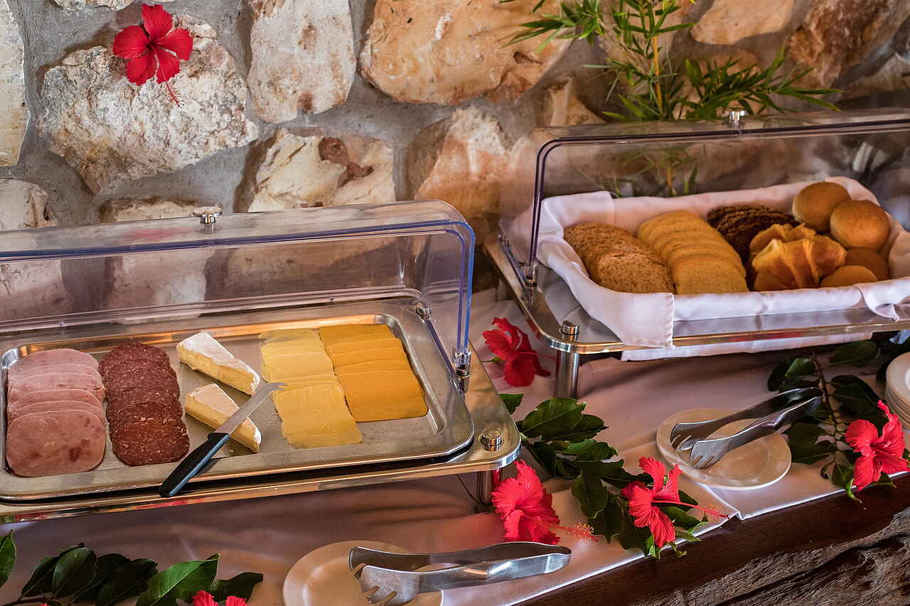 Am Hang zwischen Gartenplateau und Strand stehen vier Häuser mit jeweils einer Beach Suite in der unteren Etage und 2 Sea View Bedrooms in der oberen Etage. Die südöstlichste Beach Suite ist die etwas luxuriöser ausgestattete Presidential Suite. Diese Suiten und Zimmer erreicht man, nachdem man den Rasen vor dem Hotel überquert hat und dann über Treppen zu den Eingängen hinabgestiegen ist. Außerdem gibt es 5 Garden Suites, die ohne Meerblick im Garten auf dem Plateau liegen.