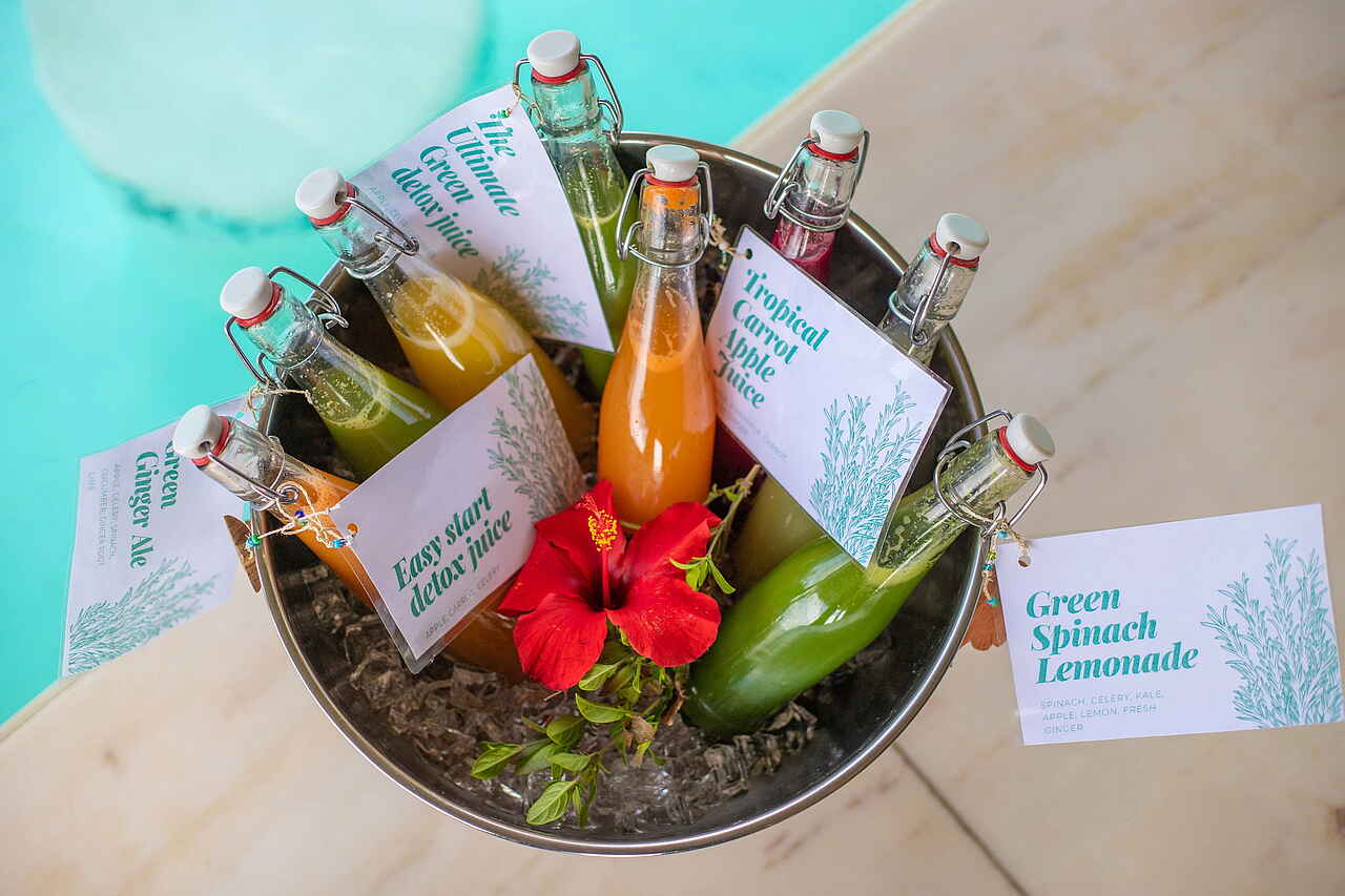 Alle Suiten und Zimmer verfügen über private Veranden oder Terrassen, Klimaanlagen, Moskitonetze, WLAN, private Bäder mit Dusche, Waschbecken, WC sowie fließend Kalt- und Warmwasser. Die Beach-Suiten haben außerdem eine kleine private Lounge, eine kleine Küche, einen Grill auf der Terrasse sowie einen privaten Plunge Pool. Die Garten Suiten haben besonders große Betten. Zwei der Suiten können über eine Verbindungstür zu einer Familieneinheit zusammengeschlossen werden.