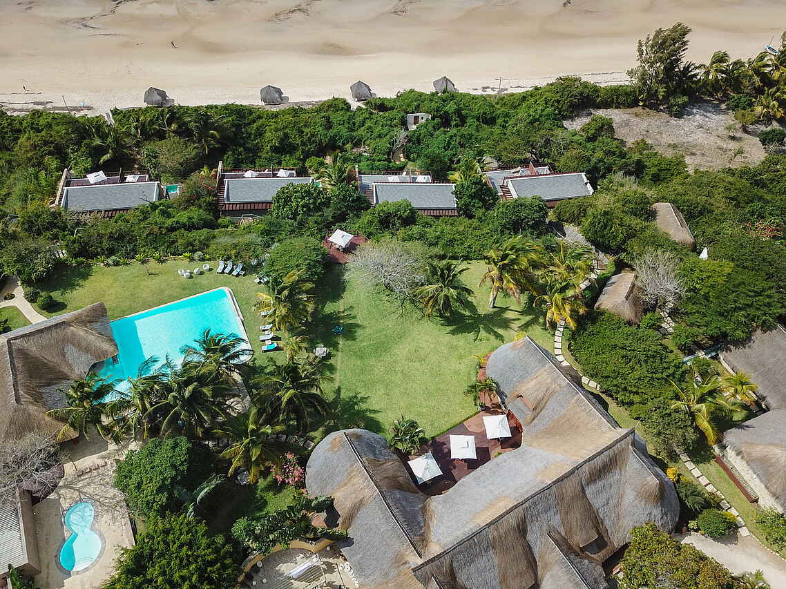 Außerhalb des Hotel werden keine eigenen Aktivitäten angeboten, aber gerne vermittelt: Schnorcheln oder Tauchen am 2-Mile Reef, Kite Surfing, Exkursionen zum Bazaruto Island, Sand Boarding, Fahrten in einer traditionellen Dhow, "Picknick"-Ausflüge auf einsame Sandbänke. Wanderungen zu den kleinen Seen in der Umgebung von Vilanculos, Vogelbeobachtung. Hubschrauberrundflüge.