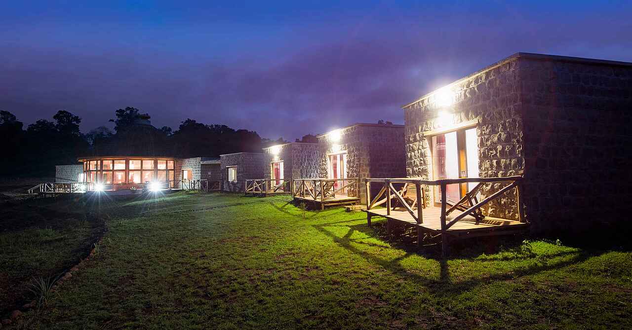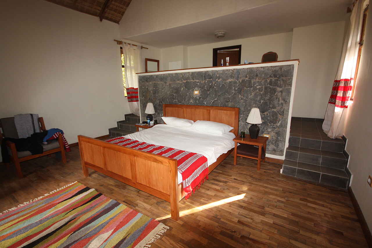 Eine Speisekarte gibt es hier nicht, aber der Koch, ausgebildet im Londoner Savoy, serviert die vielleicht beste Küche Äthiopiens und nutzt frische, lokal produzierte Zutaten, wann immer möglich. Alle Mahlzeiten und Getränke sind im Preis inbegriffen, ausgenommen importierte alkoholische Getränke.