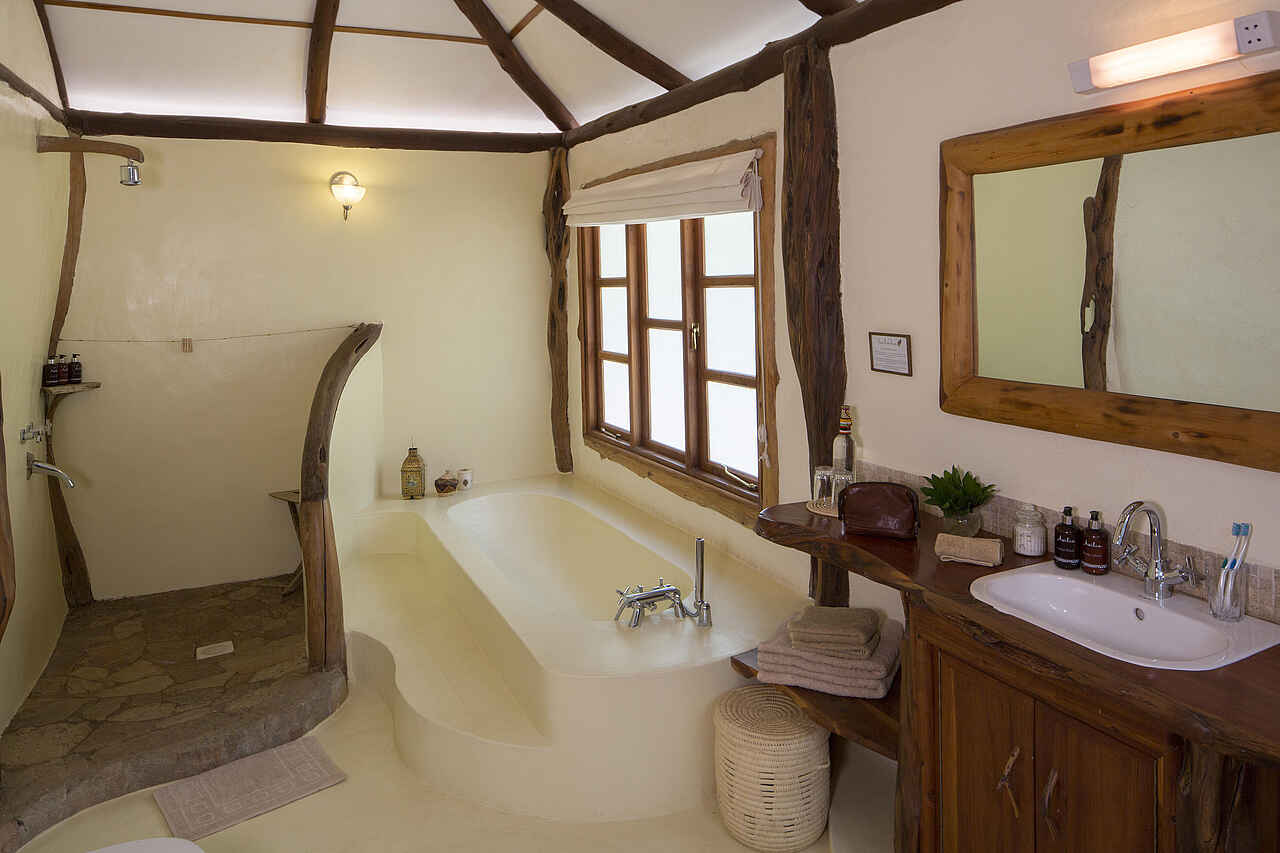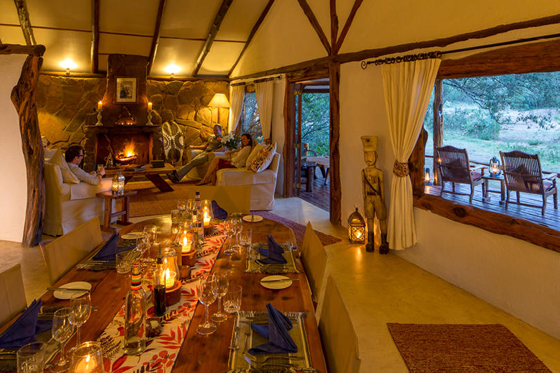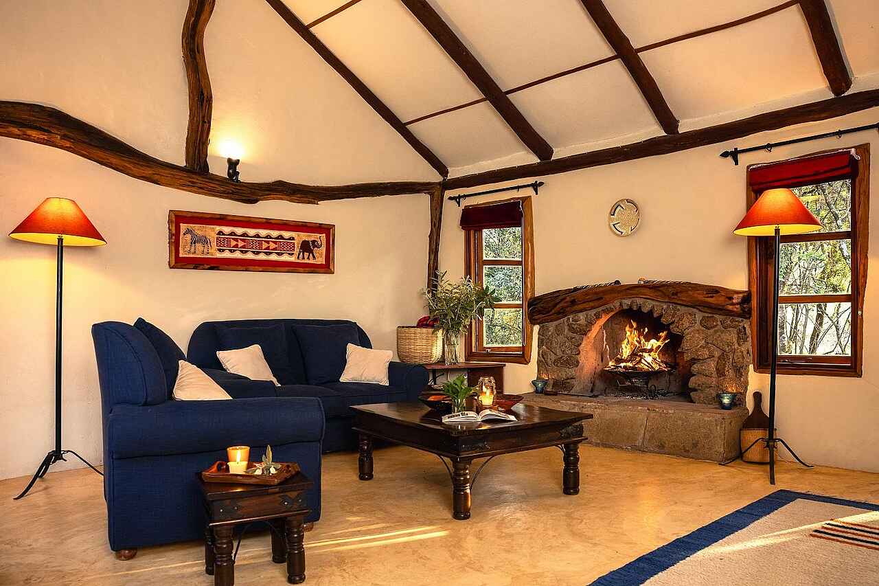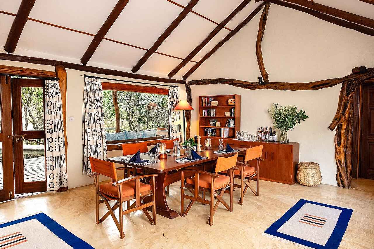 Jedes Haus verfügt über einen großzügigen Wohn- und Essbereich mit bequemen Sofas, Sesseln und einem Kamin, der an kühlen Abenden wohlige Wärme spendet. Große Fenster oder Türen öffnen sich zu einer privaten Veranda mit gemütlichen Sitzplätzen und Blick ins Grüne oder auf den Fluss. Acacia House bietet zusätzlich einen Pool mit freiem Blick in die Savanne. Für einen rundum persönlichen Aufenthalt sorgt ein eigenes Team aus Koch, Hauspersonal und privatem Guide mit Fahrzeug.