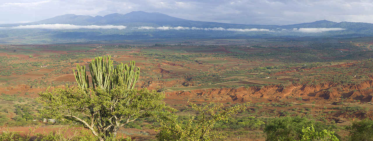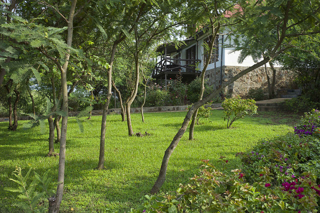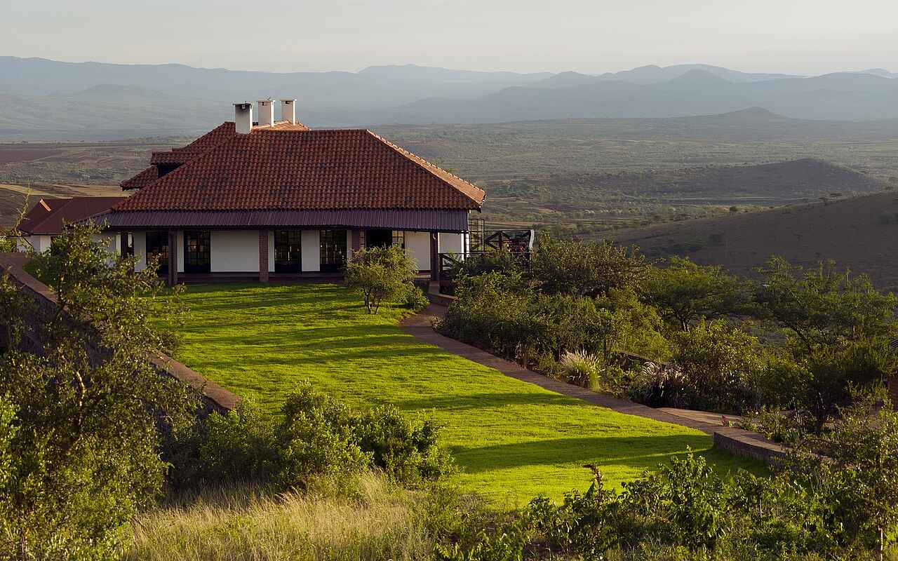 Die Lodge liegt auf einem Hügel, der sich um ca. 50m über die Umgebung erhebt. Die weitere Umgebung wird landwirtschaftlich genutzt. In der Ferne sieht man Mt. Oldeani und Lake Eyasi.