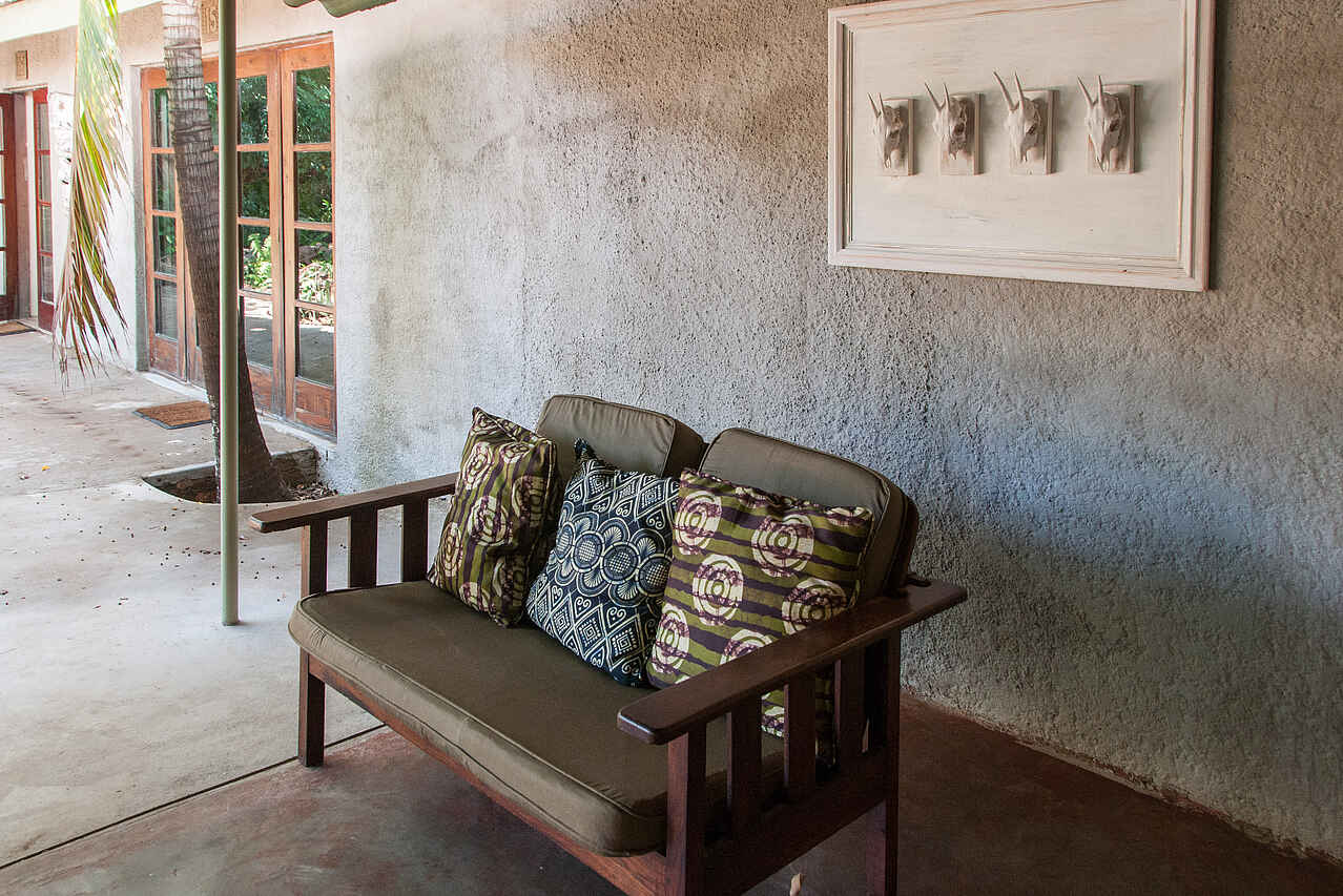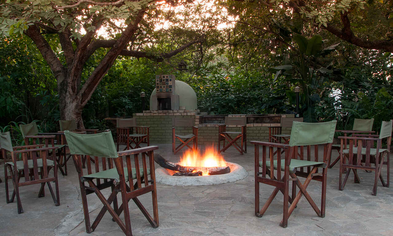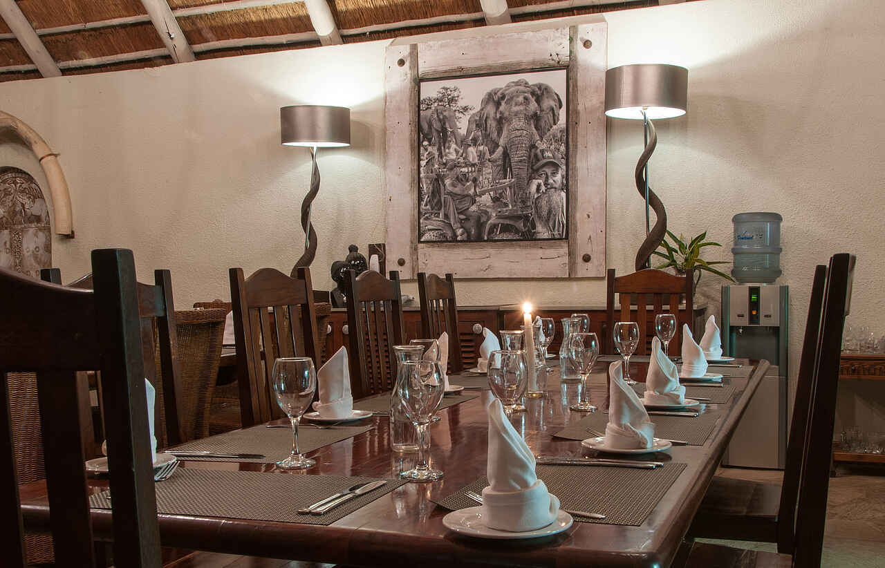 Sozialer Mittelpunkt der Bayete Guest Lodge bildet die Caldecott Boma mit Restaurantbereich und voll ausgestatteter Bar – der Ngwezi Taverne. Im Restaurant werden an privaten Tischen alle Mahlzeiten serviert. Im Außenbereich, einem tropischen Garten, können die Gäste um die Feuerstelle Platz nehmen. Angrenzend liegt der große Swimmingpool mit Liegestühlen, Sitzmöglichkeiten und Sonnenschirmen. Außerdem gibt es einen kleinen Fitnessbereich im Freien.