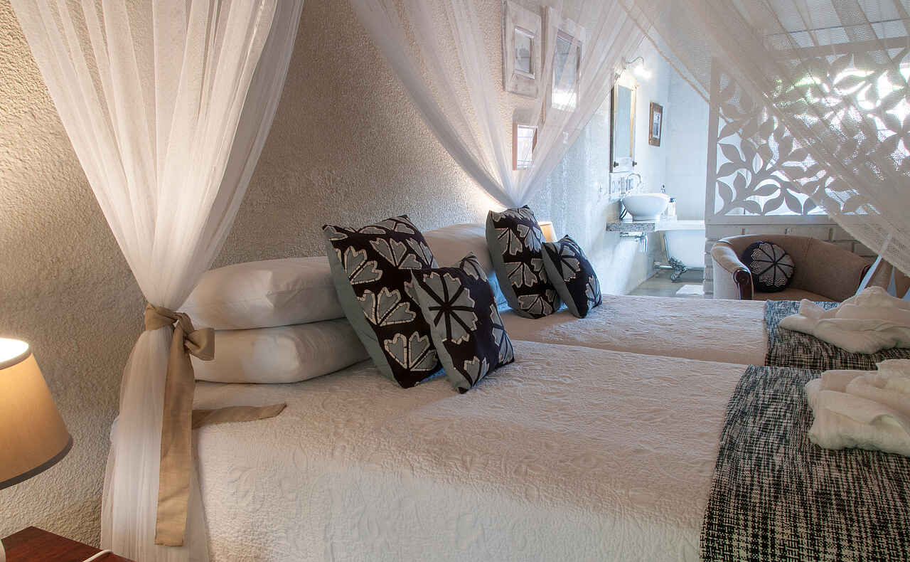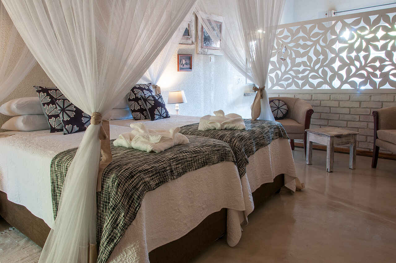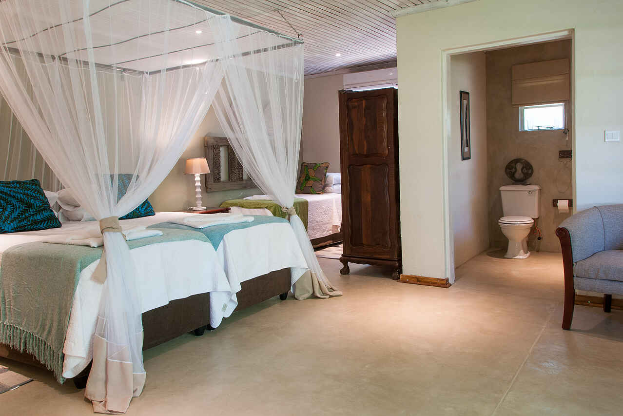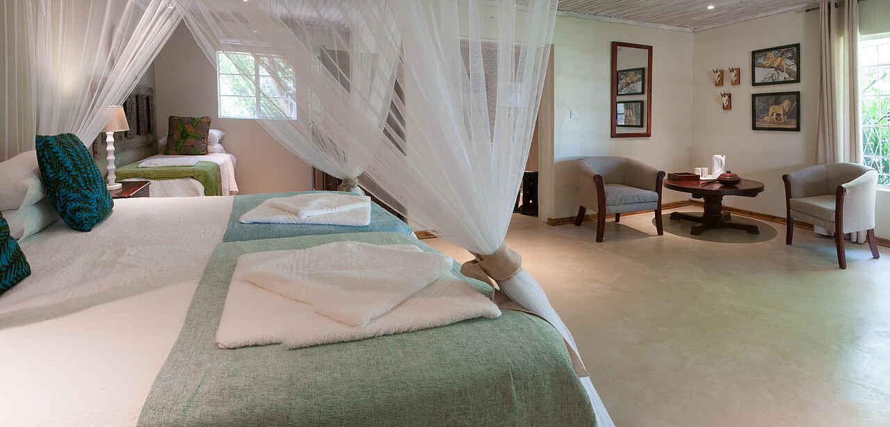 Kinder sind in der Bayete Guest Lodge willkommen. Ein Familien-Cottage mit einem Doppelbett und 3 Einzelbetten steht zur Verfügung.