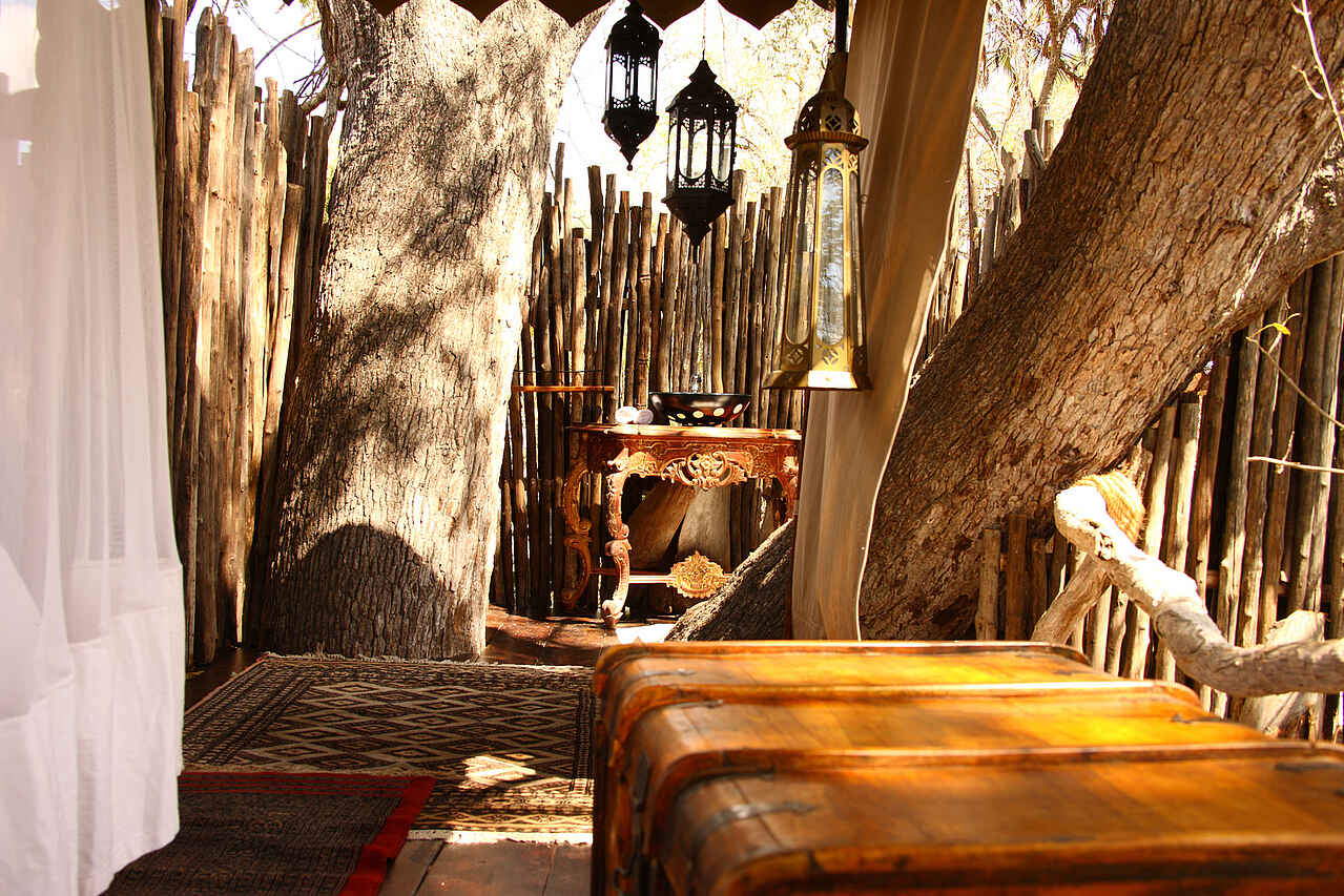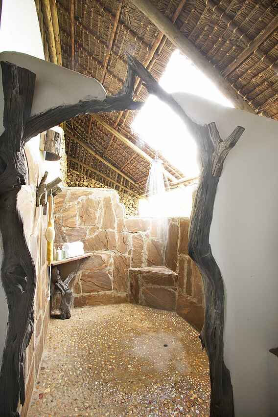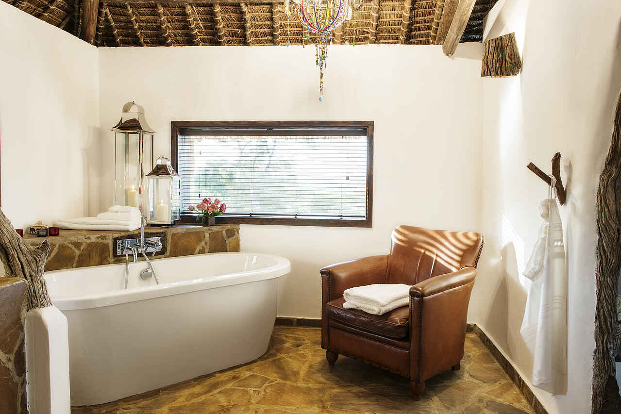8 „Bandas“ mit Kingsize-Bett, sansibarischem Tagesbett, Schreibtisch und Ankleidezimmer. Badezimmer mit Outdoor-Shower, Toilette mit Spülung, fließendem Wasser und zwei Waschbecken. Teleskop, Moskitonetze, WiFi, Balkon, Veranda, Ventilator, Fön, Safe, Steckdosen. Privatvilla „Bailey’s Banda“ mit eigenem Pool, Koch und Fahrzeug. Zusätzlich besteht die Möglichkeit, eine Nacht im Baumhaus zu verbringen.