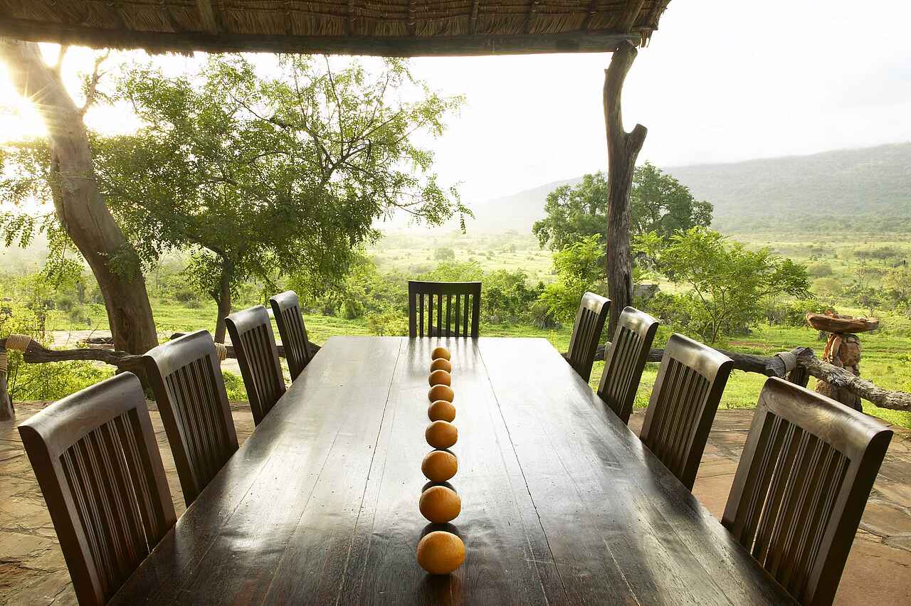 All Inclusive. Frühstück, oft im Busch serviert, Mittagessen gegen 13 Uhr, 3-Gänge-Menü am Abend mit wechselnder Location, Gruppenmahlzeiten.