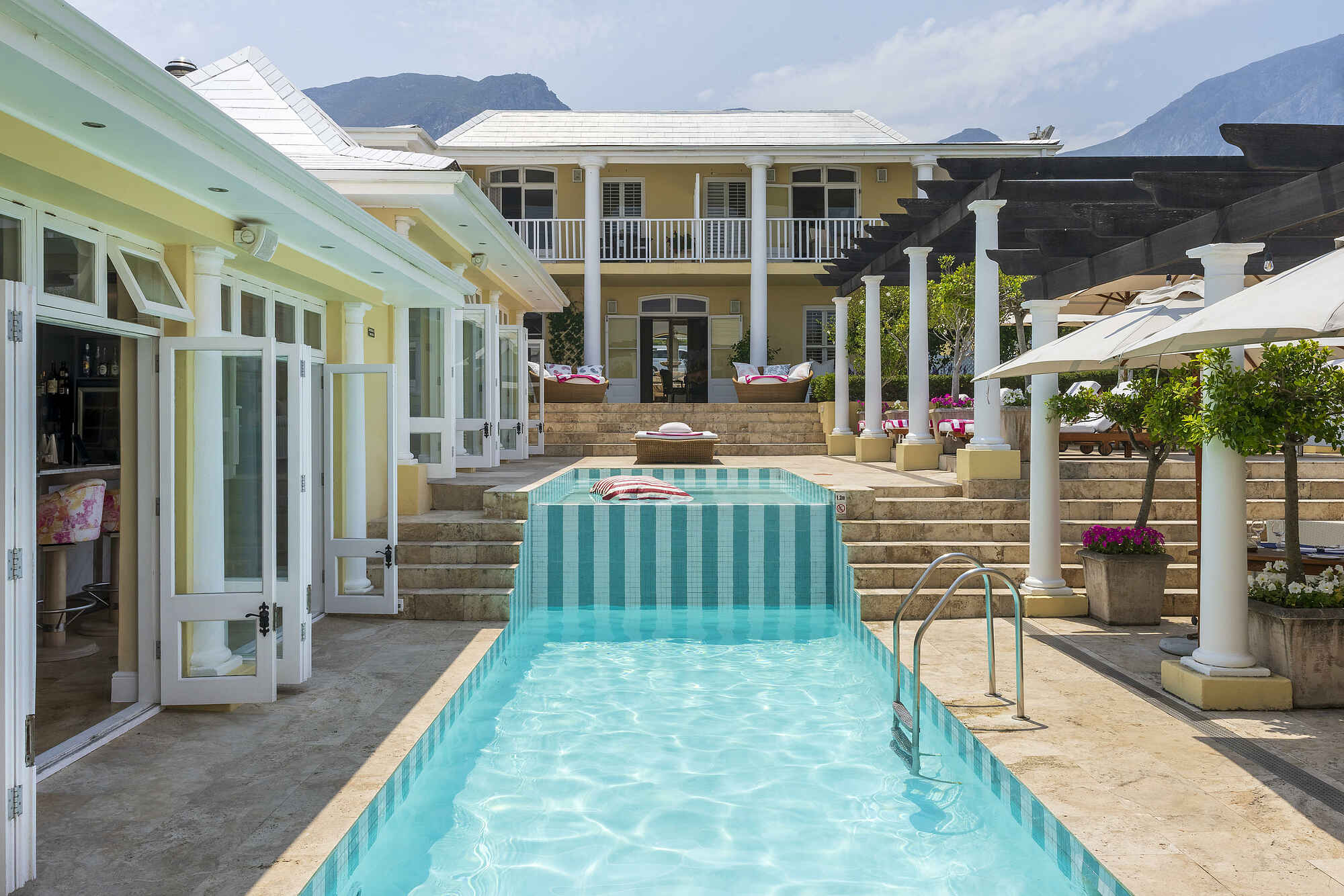 Die eleganten Lounges des Birkenhead House öffnen sich mit bodentiefen Fenstern direkt zum Meer und schaffen ein Ambiente, in dem sich Entspannung fast von selbst einstellt. Auf weichen Sofas oder in gemütlichen Sesseln kann man den Blick schweifen lassen, während draußen die Wellen an die Klippen schlagen. Zwei Pools bieten Abwechslung: ein Infinity Pool mit weitem Blick über die Walker Bay und ein ruhiger Pool im Innenhof. Für genussvolle Stunden stehen stilvolle Speiseräume bereit, die wahlweise offen zur frischen Meeresbrise oder geschützt genutzt werden. Abgerundet wird das Angebot durch ein Spa mit verwöhnenden Anwendungen, ein modernes Fitnessstudio, eine Boutique und kostenfreies WLAN in allen Bereichen.