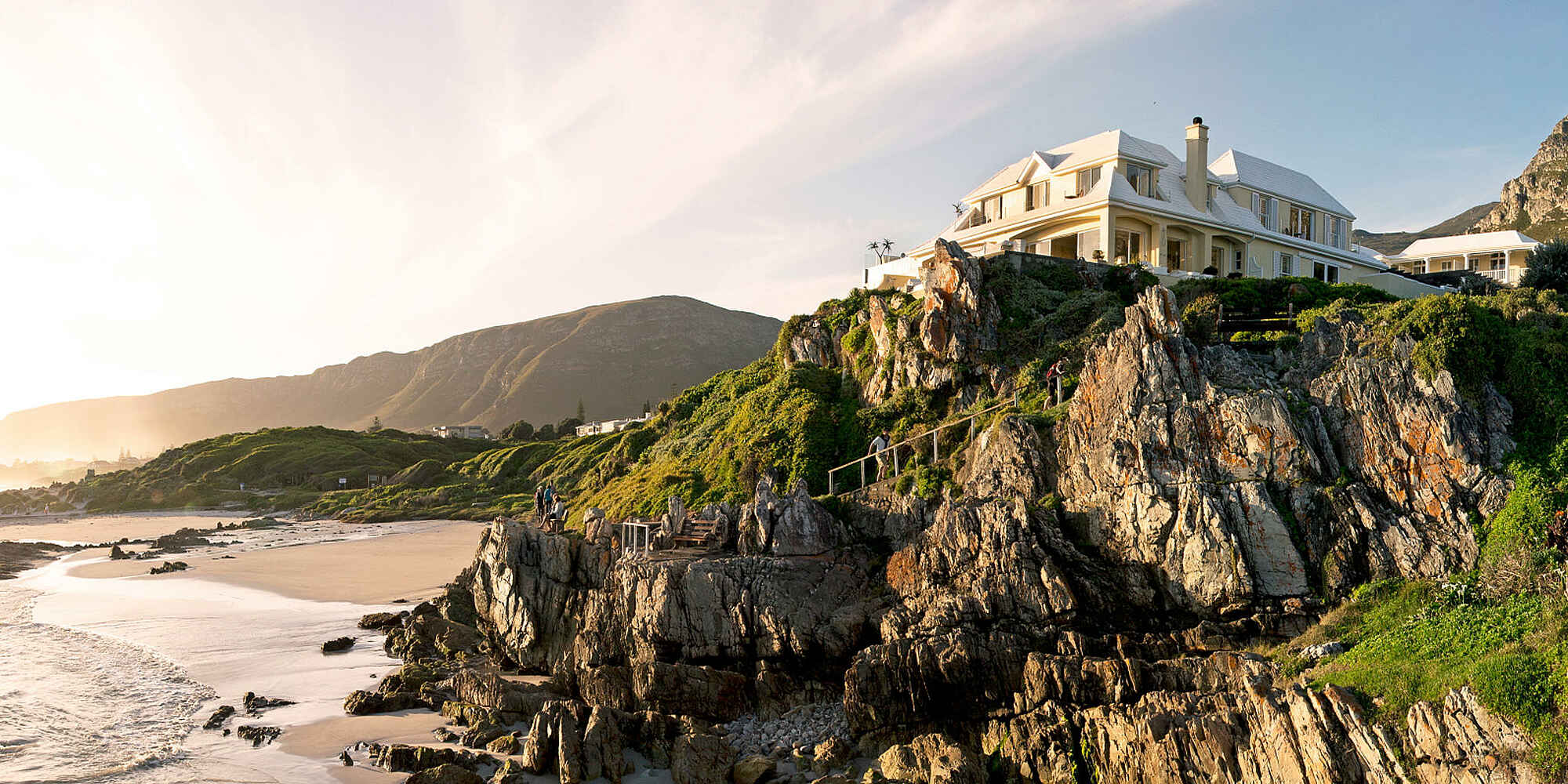Das Birkenhead House liegt in Südafrika, in der Küstenstadt Hermanus an der berühmten Walker Bay. Hier thront das Boutiquehotel spektakulär auf den Klippen mit weitem Blick über den Atlantik. Von Juni bis Dezember lassen sich von der Terrasse aus Südliche Glattwale und Buckelwale beobachten, die ganz nah an der Küste vorbeiziehen. Die Zimmer sind individuell und stilvoll eingerichtet, jedes mit eigenem Charakter, von klassisch elegant bis hin zu modern mit maritimem Flair. Dazu kommt eine entspannte Beach-House-Atmosphäre, die dennoch höchsten Komfort bietet. Die Verbindung von eindrucksvoller Lage, stilvollem Interieur und unvergesslichen Naturerlebnissen macht das Birkenhead House zu einem Ort, der lange in Erinnerung bleibt.