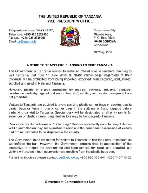 Die teilweise unklaren Informationen zum Plastikverbot in Tansania haben viel Verwirrung hervorgerufen. Inzwischen hat die tansanische Regierung reagiert und das Plastikverbot teilweise relativiert. Für Touristen, die auf Safari gehen oder nach Sansibar fliegen, hat das Plastikverbot keine gravierenden Auswirkungen. Die "zip-lock" Plastikbeutel für das Verpacken von Flüssigkeiten oder Kosmetik sind erlaubt, da man davon ausgeht, dass diese auch wieder mit nach Hause genommen werden.