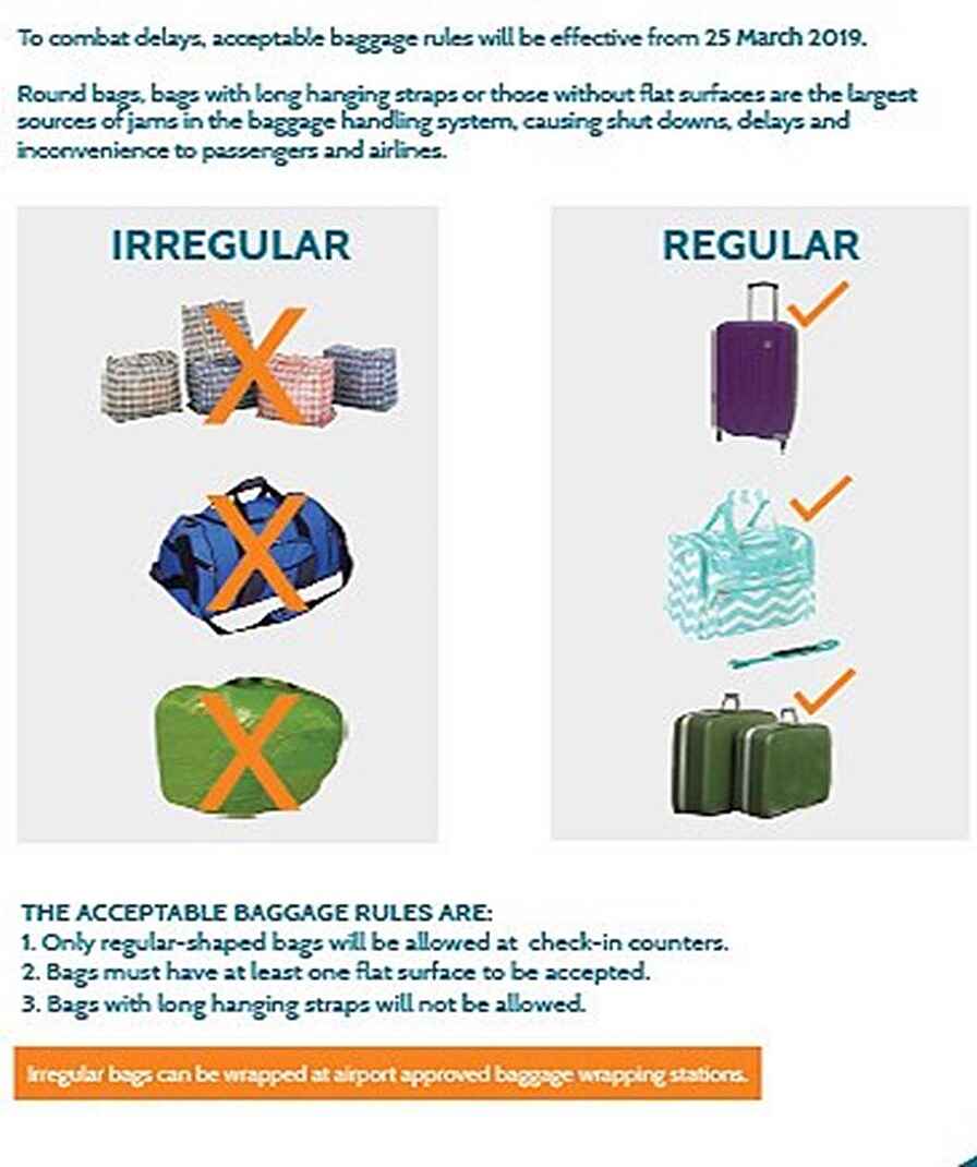 NEW RULES AT O. R. TAMBO INTERNATIONAL AIRPORT FOR BAGS OF IRREGULAR SHAPE