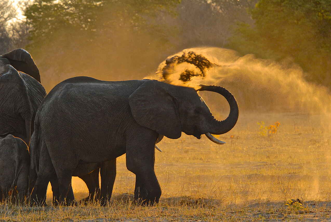 Erfahrene Tourguides bringen die Gäste auf Pirschfahrten am Tag und auch Nachts durch den Hwange National Park, sowie zu umliegenden Dörfern und Schulen; Elefanten kann man auch direkt von der Lodge aus am Wasserloch beobachten.