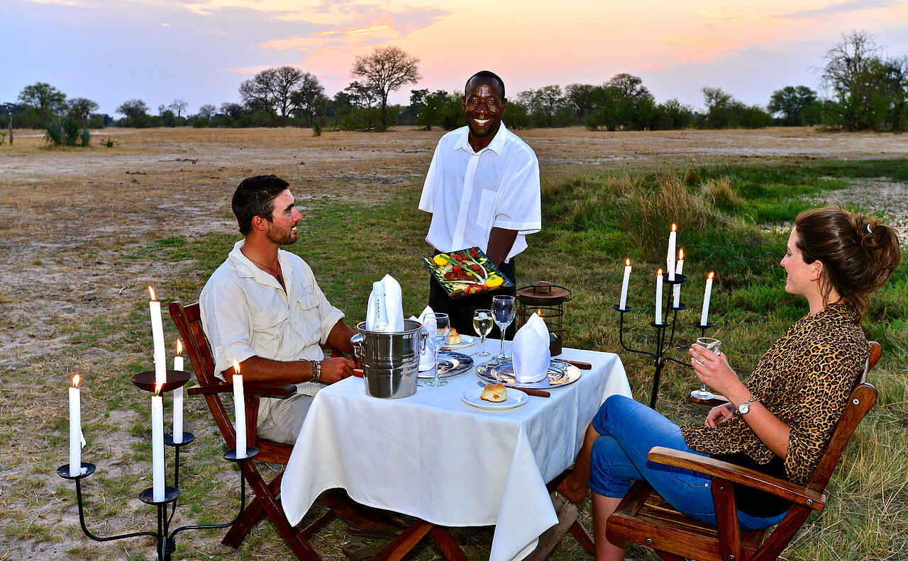 Dreimal täglich Essen; bei bestimmten Safaris auch Snacks zum Mitnehmen; Essensraum an den Seiten geöffnet und dadurch mit Ausblick auf die Ebene