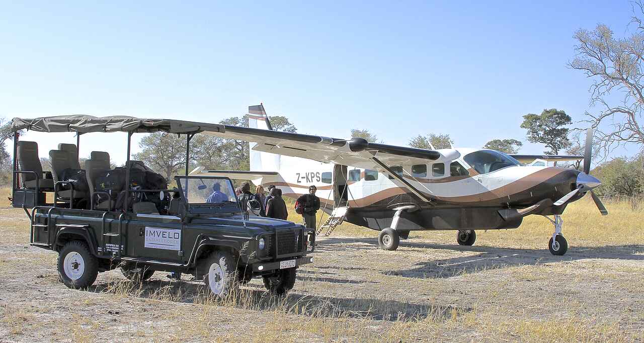 Transfer ab Victoria Falls oder Bulawayo: per Kleinflugzeug (1 Stunde) oder per Auto (4 Stunden) Der Flughafen Bulawayo wird von Flughäfen in Simbabwe, Botswana, Südafrika und Sambia angeflogen; der Flughafen Victoria Falls besitzt insbesondere eine Verbindung zum Flughafen Johannesburg