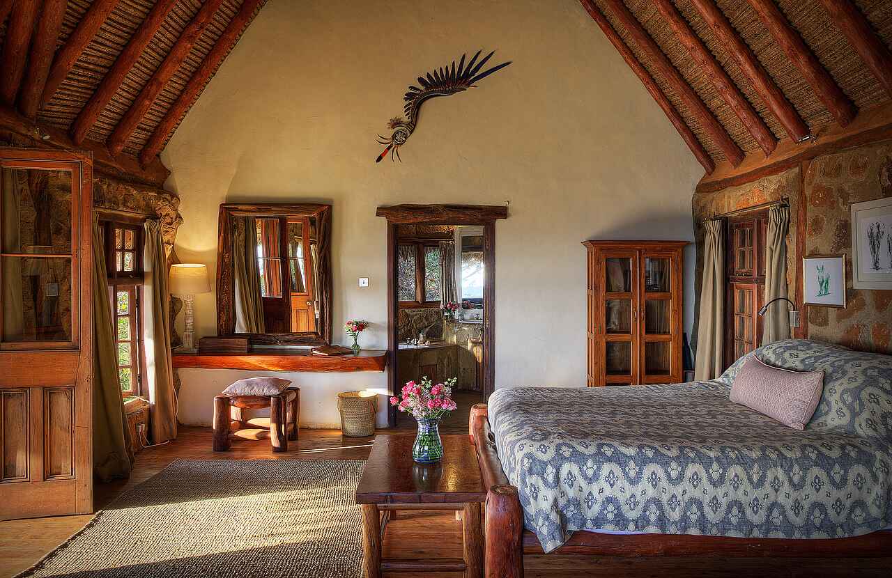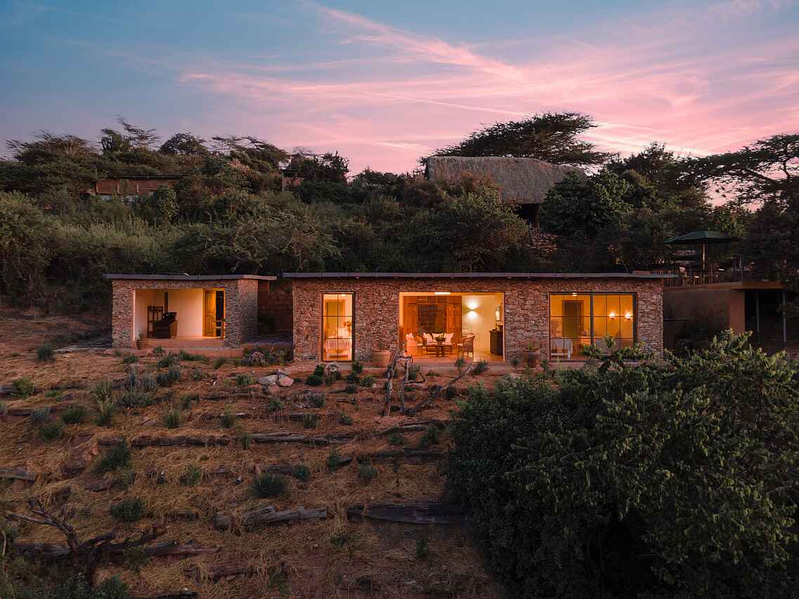 Die sechs steinernen Cottages der Borana Lodge verteilen sich entlang eines Hangs und bieten weite Ausblicke auf das Borana Conservancy. Jedes Cottage ist individuell eingerichtet, mit großzügigen Schlafbereichen, offenem Kamin, handgefertigten Holzmöbeln und bequemen Sitzgelegenheiten. Große Fensterfronten und private Veranden schaffen fließende Übergänge zur Natur. Die Badezimmer verfügen über Dusche, Doppelwaschbecken, hochwertige Pflegeprodukte und separate WCs. Einige Cottages bieten auch Badewannen mit Aussicht. Moskitonetze umgeben die Betten, und Wärmflaschen sorgen in kühlen Nächten für zusätzlichen Komfort. Für Familien stehen zwei Cottages mit Verbindungstüren zur Verfügung. Tee- und Kaffeezubereitungsmöglichkeiten sowie Trinkwasser stehen in jedem Cottage bereit.