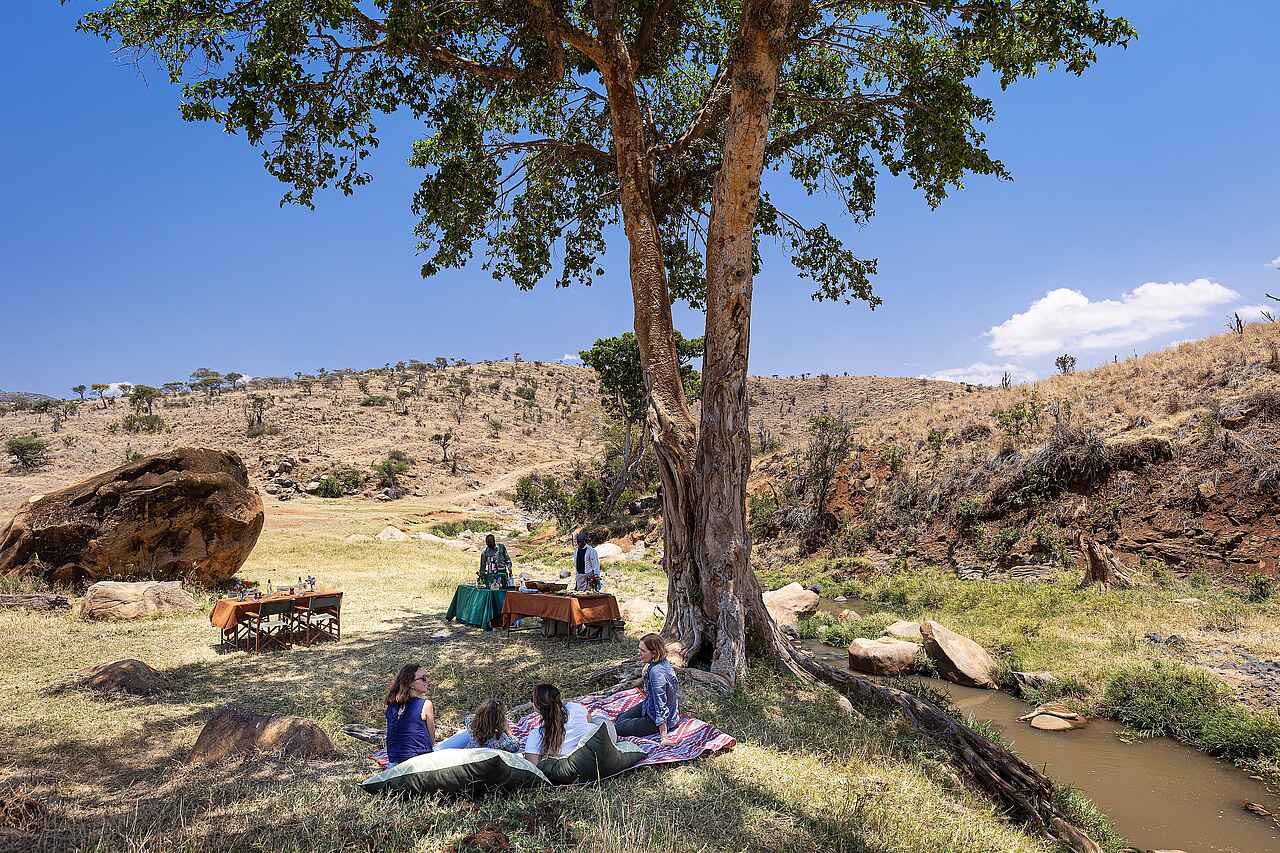 Ergänzend dazu werden geführte Buschwanderungen, Mountainbike-Touren, Vogelbeobachtungen und kulturelle Ausflüge in benachbarte Gemeinden angeboten. Für Entspannung sorgen Yoga, Massagen und ein stilvoll arrangiertes Picknick im Busch. Auf Wunsch kann auch ein Abstecher in das angrenzende Lewa Wildlife Conservancy organisiert werden.
