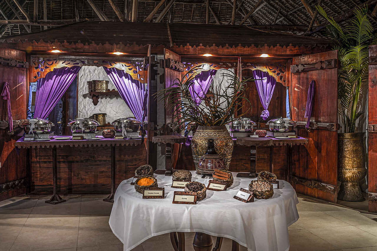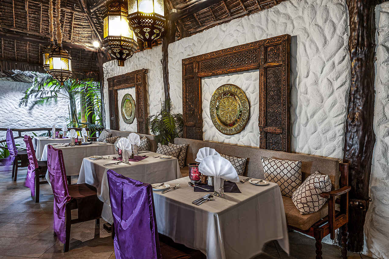 Im Breezes Beach Club & Spa Zanzibar erwartet die Gäste ein kulinarisches Erlebnis der Extraklasse. Es gibt mehrere Restaurants, darunter das "Salama Dining Room", das ein reichhaltiges Frühstücksbuffet und Abendessen mit internationalen und lokalen Gerichten anbietet. Das Abendessen findet abwechselnd in Form eines Themen-Buffets oder als 4-Gänge-à-la-carte-Menü statt, als Dress-Code für Männer gilt abends lange Hosen. Das "The Breakers Grill" serviert tagsüber verschiedene Mittagsgerichte darunter Barbecue und Pizza direkt am Strand. Das "Tides" bietet ein intimes, romantisches Dinner-Erlebnis für zwei bis vier Personen mit Meerblick. Die Safari Bar verspricht abends eine entspannte Atmosphäre mit Kerzenlicht und Musik, die Pool Bar Strandfeeling und innovative Getränke. In der Baraza Bar sind Zigarren und Whiskeys erhältlich. Breezes Beach Club & Spa Zanzibar ist mit Halbpension oder mit Vollpension buchbar.