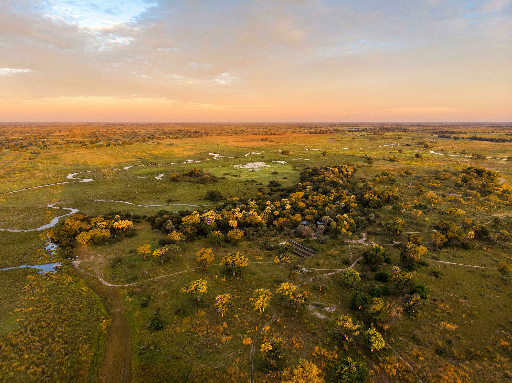 Das Camp liegt auf der Insel Nxaragha im Okavango-Delta, im nordwestlichen Botswana. In der Umgebung eine Fülle an kleinen Seen, Sumpflandschaften, Grasland und mit Papyrus gesäumten Kanälen.