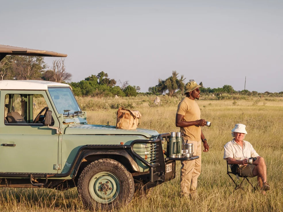 Vom nahegelegenen Maun aus beträgt die Fahrzeit zum Cha Cha Metsi Camp etwa 2,5 Stunden. Alternativ kann das Camp in nur 20 Minuten per Hubschrauber erreicht werden.