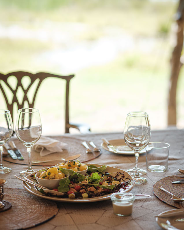 Die Mahlzeiten werden entweder im Gemeinschaftszelt oder an der Boma serviert. Die Küche ist überwiegend von afrikanischen Einflüssen geprägt und bietet eine Vielzahl von Gerichten, die von botswanischem Rindfleisch bis hin zu typisch afrikanisch-vegetarischen Spezialitäten reichen. Alle Mahlzeiten und Getränke sind im Preis inbegriffen, und auf besondere diätetische Wünsche wird gerne eingegangen. Bitte im Voraus anmelden.