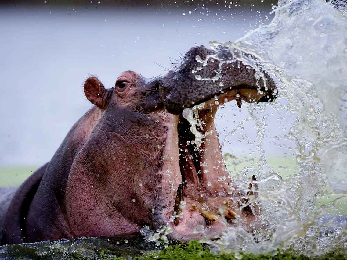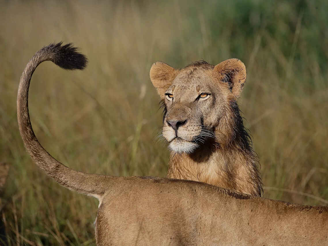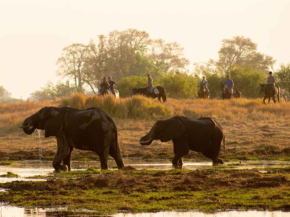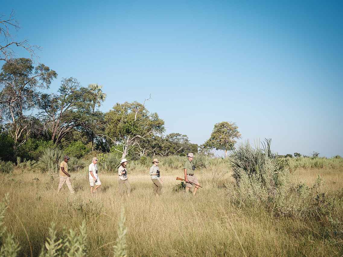 Das Okavangodelta bietet Naturliebhabern die einmalige Gelegenheit, die berühmten "Big Five" und andere ikonische Tierarten in einer beeindruckenden Landschaft zu erleben. Die Gegend beherbergt eine große ansässige Population von Elefanten, Leoparden und Löwen. Nachts kann man sie vom Camp aus hören, und obwohl es nicht garantiert ist, können tägliche Sichtungen möglich sein.