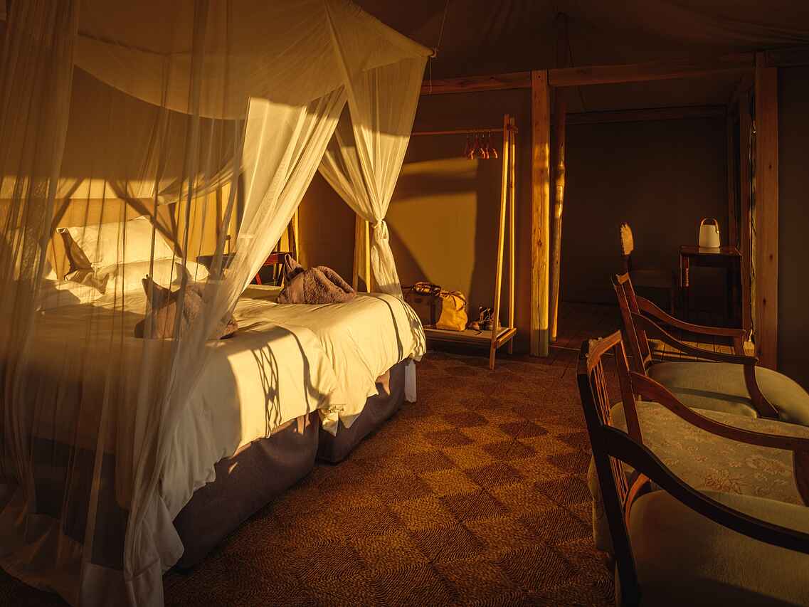 Max. 16 Gäste in 6 Zeltsuiten, davon 2 Familiensuiten