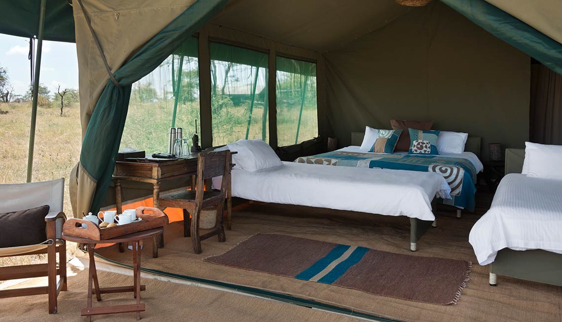 Das leichte Wandercamp schmiegt sich mit seinen unterschiedlichen Standorten in die Grassavanne Tansanias ein. Ende Mai bis Oktober befindet es sich bei Kogatende im Norden des Serengeti Nationalparks, der mit 14.763 qm einen der größten Nationalpark weltweit darstellt. Das Camp liegt hier n der Nähe des Mara River. Von Dezember bis März liegt das Camp südlich der Serengeti im Ndut Gebiet, in der Ngorongoro Conservation Area. Hier ist ein einfacher Zugang zu dem Ndutu Lake und dem Masek Lake gegeben. Das alleinstehende Camp wird unter Akazien aufgebaut und bietet einen freien, weiträumigen Blick auf die umliegende Graslandschaft.