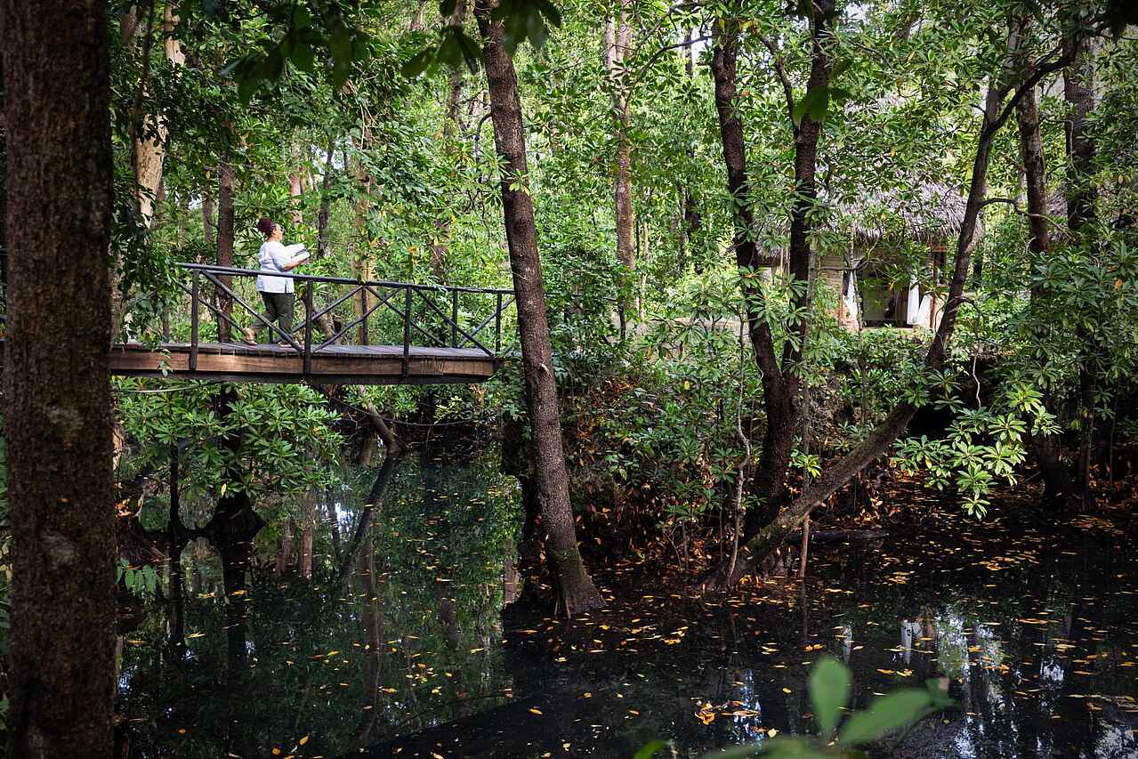 Das Resort bietet ein vielfältiges Aktivitätenprogramm an Land und im Wasser. Gäste haben die Möglichkeit, im nahegelegenen Korallenriff zu tauchen oder zu schnorcheln und so die faszinierende Unterwasserwelt des Indischen Ozeans zu entdecken. Kajakfahren, Stand-up-Paddling und Bootsfahrten zählen ebenfalls zu den beliebten Wassersportarten. Naturführungen durch den Mangrovenwald, Vogelbeobachtungen und Inselspaziergänge ermöglichen einen Einblick in die heimische Flora und Fauna. Wellness-Liebhaber können sich im Spa verwöhnen lassen, während Abenteurer beim Tiefseefischen auf ihre Kosten kommen.
