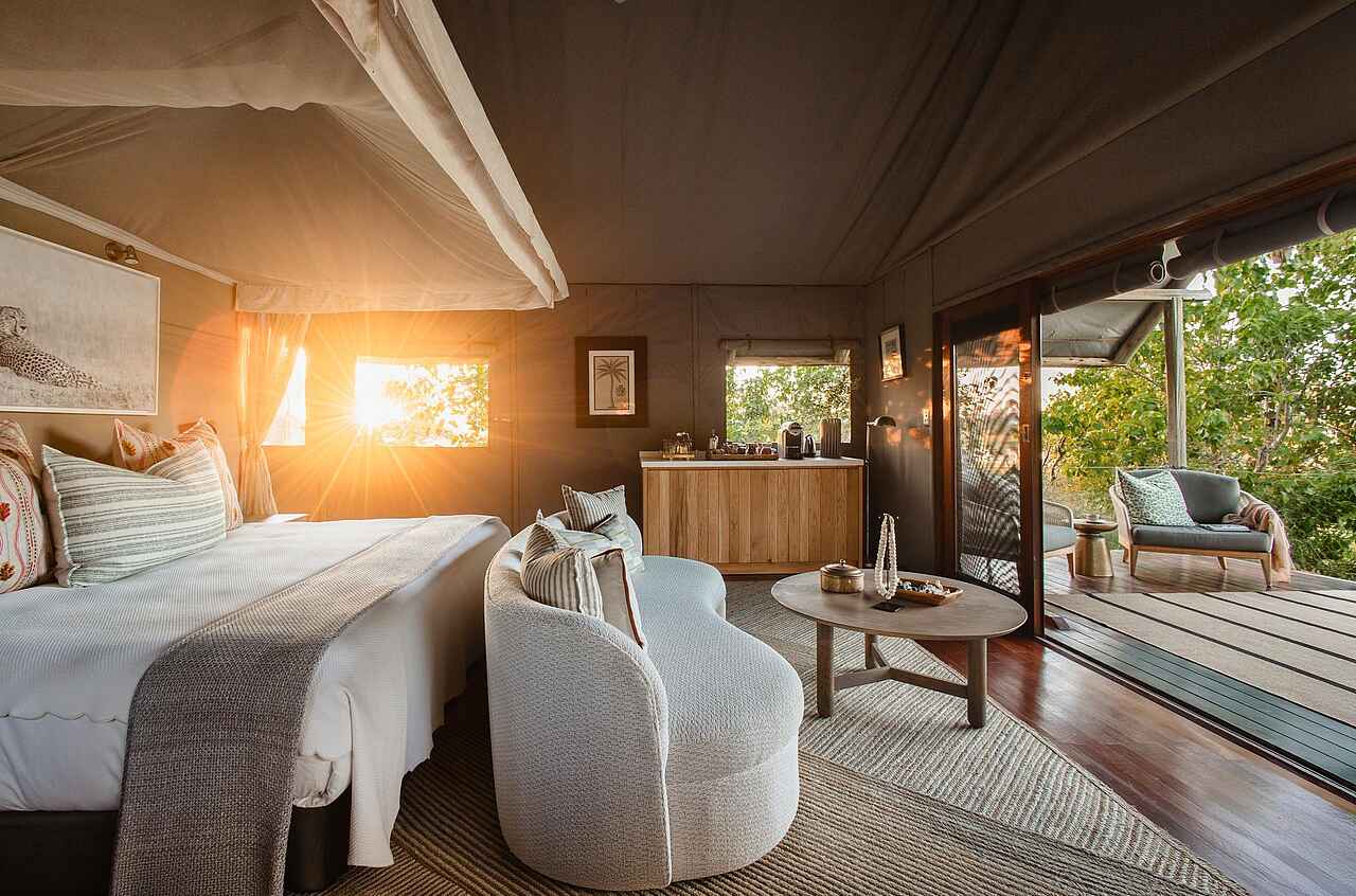 Max. 14 Gäste in 5 Zeltsuiten, davon 2 Familienzelte