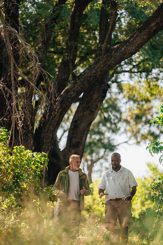 Im Mittelpunkt des Aufenthalts stehen Pirschfahrten in offenen Geländewagen. Die Safaris finden am frühen Morgen und am späten Nachmittag statt und können flexibel an Tierbewegungen angepasst werden. Durch die Lage im privaten Konzessionsgebiet sind auch Nachtpirschfahrten möglich. Ganztägige Safaris mit Picknick erlauben es, größere Gebiete intensiv zu erkunden. Zusätzlich werden geführte Buschwanderungen angeboten, bei denen Spurenlesen, Pflanzenkunde und kleinere Details der Umgebung thematisiert werden. Vogelbeobachtungen sind ganzjährig möglich, insbesondere während der grünen Saison. Der Fokus liegt auf klassischen Safari-Erlebnissen mit hoher Flexibilität.